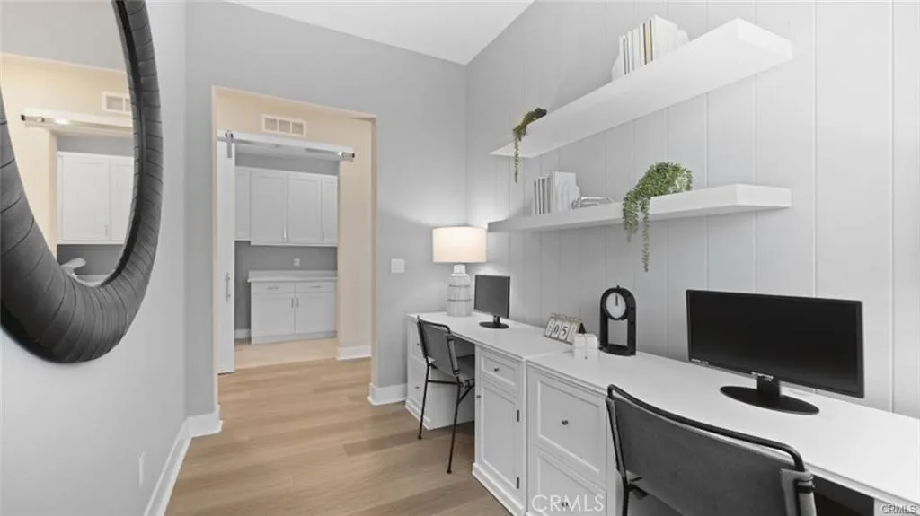 Enjoy a custom office with built-in cabinetry, a chef-inspired upgraded kitchen with premium appliances including granite countertops, self closing cabinets and drawers, and a separate laundry room for added convenience. The garage is enhanced with custom cabinetry, while professionally designed landscaping graces both the front and backyard.