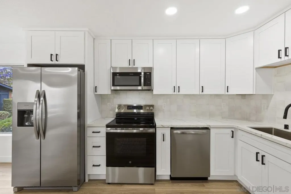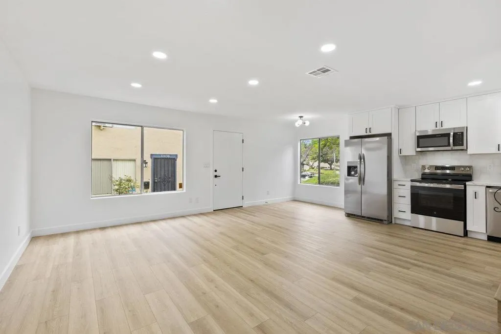 Highly upgraded 2-story, 2-bedroom, 1-bath condo located in the desirable Peñasquitos Villas community, tucked at the end of a quiet cul-de-sac in Rancho Peñasquitos. This thoughtfully remodeled home offers a fresh, modern feel with luxury vinyl plank flooring throughout both levels, wide baseboards, and all-new interior paint-including closets-for a crisp, cohesive look. Refurbished handrail complements the updated staircase, and new recessed lighting in the dining and living areas enhances the bright and open ambiance. The fully remodeled kitchen is both stylish and functional, featuring all-new cabinets, quartz countertops, a new sink and faucet, new tile backsplash, brand-new appliances, and updated lighting that highlights the quality of the finishes. The adjacent dining area blends seamlessly with the living space, making it ideal for everyday living and entertaining.Upstairs, you’ll find two comfortable bedrooms with ceiling fans and mirrored closet doors. One bedroom overlooks a blooming Jacaranda tree, offering a peaceful touch of greenery just outside the window. The beautifully renovated bathroom includes a new vanity with a quartz countertop, new sink and faucet, new toilet, new tub and fixtures, and a custom tile tub/shower enclosure with a clean, modern finish. Additional features include all-new interior doors, a hallway linen cabinet, an extra upstairs storage closet, and a shared one-car garage. The location is both peaceful and convenient with no road noise. This move-in-ready home combines comfort, quality upgrades, and a great Rancho Peñasquitos locatio Highly upgraded 2-story, 2-bedroom, 1-bath condo located in the desirable Peñasquitos Villas community, tucked at the end of a quiet cul-de-sac in Rancho Peñasquitos. This thoughtfully remodeled home offers a fresh, modern feel with luxury vinyl plank flooring throughout both levels, wide baseboards, and all-new interior paint-including closets-for a crisp, cohesive look. Refurbished handrail complements the updated staircase, and new recessed lighting in the dining and living areas enhances the bright and open ambiance. The fully remodeled kitchen is both stylish and functional, featuring all-new cabinets, quartz countertops, a new sink and faucet, new tile backsplash, brand-new appliances, and updated lighting that highlights the quality of the finishes. The adjacent dining area blends seamlessly with the living space, making it ideal for everyday living and entertaining.Upstairs, you’ll find two comfortable bedrooms with ceiling fans and mirrored closet doors. One bedroom overlooks a blooming Jacaranda tree, offering a peaceful touch of greenery just outside the window. The beautifully renovated bathroom includes a new vanity with a quartz countertop, new sink and faucet, new toilet, new tub and fixtures, and a custom tile tub/shower enclosure with a clean, modern finish. Additional features include all-new interior doors, a hallway linen cabinet, an extra upstairs storage closet, and a shared one-car garage. The location is both peaceful and convenient with no road noise. This move-in-ready home combines comfort, quality upgrades, and a great Rancho Peñasquitos location.