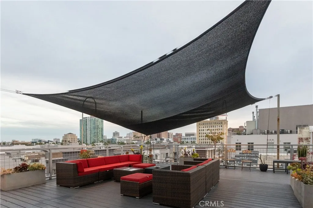 The spacious open floor plan showcases classic loft character with soaring ceilings, expansive windows, and an airy design that captures sweeping views of Downtown Long Beach. The upper and lower living spaces offer versatility for living, working, or entertaining, all enhanced by abundant natural light and an open urban feel.