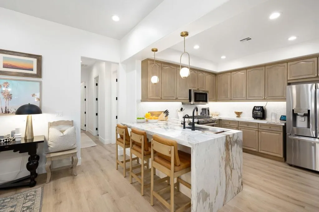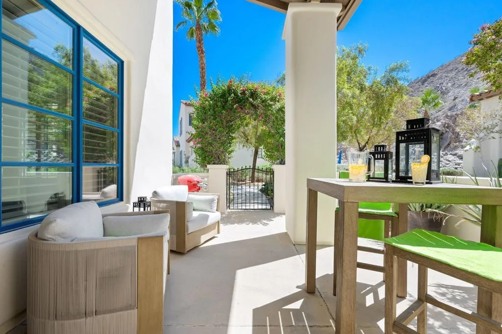 We’re thrilled to present this exquisitely remodeled, single-level, three-bedroom, three-bath townhome that is sure to become your family’s sanctuary. Imagine waking up to breathtaking mountain views every morning, not just from your bedrooms but also your great room & patio. Every surface of this unique home has been lovingly touched during the remodel, from the flooring to the walls to the AC.Indulge your culinary passions in the newly opened-up chef’s kitchen, boasting quartz countertops, brand-new cabinets, & state-of-the-art appliances. Prepare to be amazed by the finishes and custom touches, including all-new bathrooms, baseboards, hardware, outlets, switches, lighting, a water softener, & purified drinking water. At Legacy Villas, you’ll discover a world of exclusive amenities that elevate your living experience. The 11,000 sq. ft. clubhouse serves as a central hub for relaxation & entertainment. Indulge in delectable meals at the seasonal poolside restaurant, The Legacy Grill, or maintain your fitness routine at the state-of-the-art fitness center. Immerse yourself in the serene Hammock Garden. Dive into a world of aquatic bliss with 12 sparkling saltwater pools & 11 soothing spas. The grounds feature 19 fountains & walking trails. The main pool area offers poolside cabanas, showers, kids’ water fixtures, & a walk-in beach pool. Walk to the famous La Quinta Resort, where you can indulge in tennis, pamper yourself at the spa, or play golf.