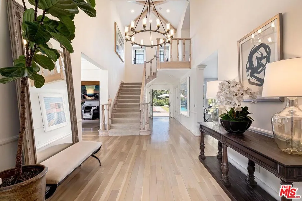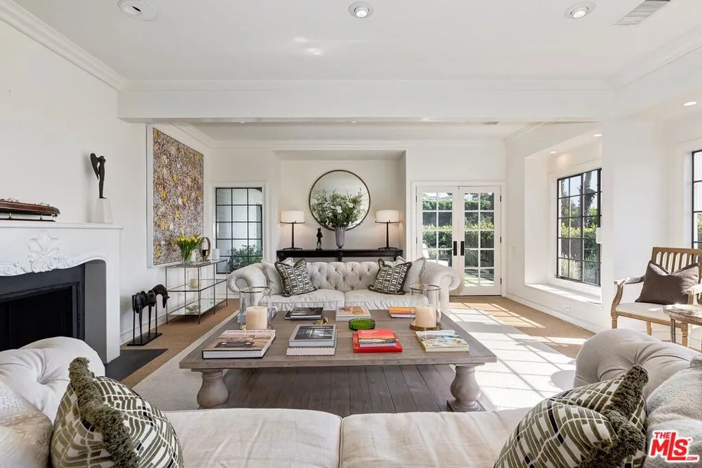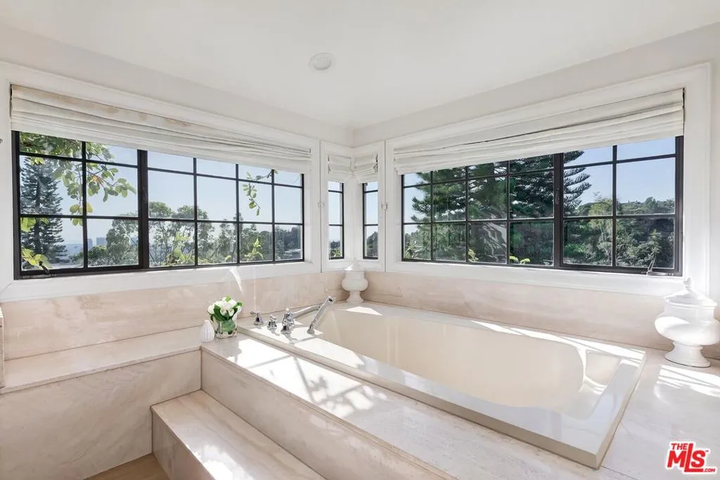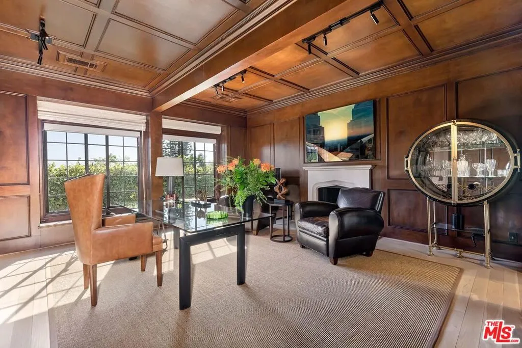 Available furnished | Short-term preferred. Rarely available in prestigious Trousdale Estates, this elegant two-story traditional residence offers expansive interiors, sweeping canyon and city views, and exceptionally large, lush grounds a true rarity in this coveted Beverly Hills enclave. Fully furnished and turnkey, the home is ideally suited for executive, relocation, or holiday residency. Set on an unusually generous lot for Trousdale, the property is defined by its expansive lawn, mature landscaping, and oversized pool with spa/jacuzzi, creating a private garden-estate atmosphere seldom found in the neighborhood. The scale and usability of the outdoor areas offer an ideal setting for entertaining, family gatherings, or quiet relaxation surrounded by greenery. A dramatic double-height entry introduces approximately 5,500 square feet of light-filled living space designed for both elegant entertaining and comfortable family living. Formal living and dining rooms feature timeless architectural detailing and fireplaces, while multiple French doors open seamlessly to terraces and gardens. The chef’s kitchen is equipped with premium appliances, stone countertops, custom cabinetry, and a generous center island, flowing naturally into casual dining and family areas with direct backyard access for effortless indoor-outdoor living. A richly detailed wood-paneled office/library with fireplace provides an exceptional work-from-home environment. The home also features two separate TV/media rooms an upstairs intimate lounge and a large lower-level media room with fireplace offering ideal spaces for relaxation, screening, or family living. A dedicated massage/wellness room adds to the home’s comfort and lifestyle amenities. The expansive primary suite features vaulted ceilings, fireplace, sitting area, dual bathrooms, generous closets, television, and a spa-style jacuzzi soaking tub, along with a private terrace overlooking lush grounds and city views. Secondary bedrooms are well-proportioned and thoughtfully positioned for privacy and comfort. Additional highlights include four fireplaces, three-car garage, and multiple indoor and outdoor living areas designed for refined yet relaxed living. With its rare two-story layout, substantial interior volume, and beautifully landscaped grounds, this furnished Trousdale estate offers privacy, scale, and a true garden setting just moments from the heart of Beverly Hills and the Sunset Strip. he heart of Beverly Hills and the Sunset Strip.