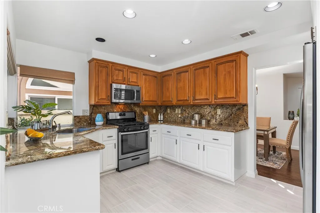 Welcome to 20 Vienna, a beautifully maintained 3-bedroom, 2.5-bath attached single-family residence located in the coveted coastal community of Marina Hills. Offering 1,773 square feet of spacious living, this home enjoys the rare advantage of no neighbors behind, creating a peaceful and private setting. The living room is highlighted by expansive ceilings, cozy fireplace, cohesive shutters and a skylight that enhances the light-filled, open feel of the thoughtfully designed floor plan. The upgraded kitchen features a stylish mix of warm wood tones and crisp white cabinetry, stunning granite countertops, stainless steel appliances, ample storage, and a functional layout perfect for everyday living and entertaining. Upstairs bedrooms are spacious and light and bright with tall ceilings and roomy closets. The primary bedroom has a fabulous deck that has endless views of hills and grass plus a large walk-in closet, and a spacious primary dual sink bathroom with newer lighting. Downstairs showcases laminate wood flooring, soaring ceilings, plus a newer Lenox HVAC system, freshly installed designer carpet upstairs, newer water/heater, Repipe, plantation shutters, garage cabinets, new bathroom light fixtures with a convenient half bath for guests, plus seamless indoor-outdoor flow to the backyard patio—ideal for relaxing or hosting gatherings. One low HOA of $225 and residents of Marina Hills enjoy resort-style amenities including a junior Olympic pool, pickleball and tennis courts, clubhouse, playgrounds, and scenic trails leading toward nearby beaches and coastal resorts. Ideally located near award-winning Blue-Ribbon schools, shopping, dining, all with a low HOA of just $225. No Mello Roo’s! This is coastal living at its finest in one of Laguna Niguel’s most desirable neighborhoods.
