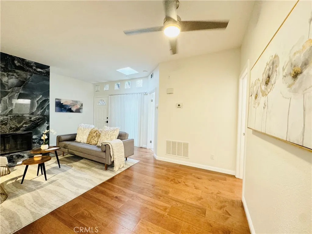NEW NEW NEW. New items are: Paint, Fireplace tile, Dishwasher, range, Microwave. Close to beach and pier. This bottom floor unit requiring no stairs has upgrades including granite countertops, newer, kitchen cabinets, beautiful new fireplace tile work, newer ceiling fan, beautiful engineered wood flooring, Direct access attached one car garage and designated open parking spot, steps to pool, barbecue, and gym. Separate laundry room. Beautiful Community Features: Wrought-iron gated entry with courtyard water feature, pool & spa, workout room, community BBQ area, recreation room.