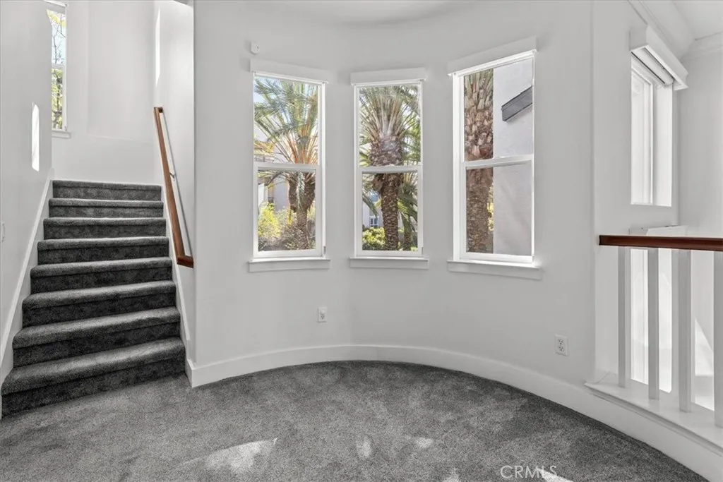 The primary suite offers a spa-style bath and dual closets. The other two bedrooms are perfectly appointed with their own full en-suite bathrooms, including a private third bedroom located on its own top-floor level alongside the open loft or office. This upper level features vaulted ceilings, tall windows, soft natural light, and beautiful tree views.