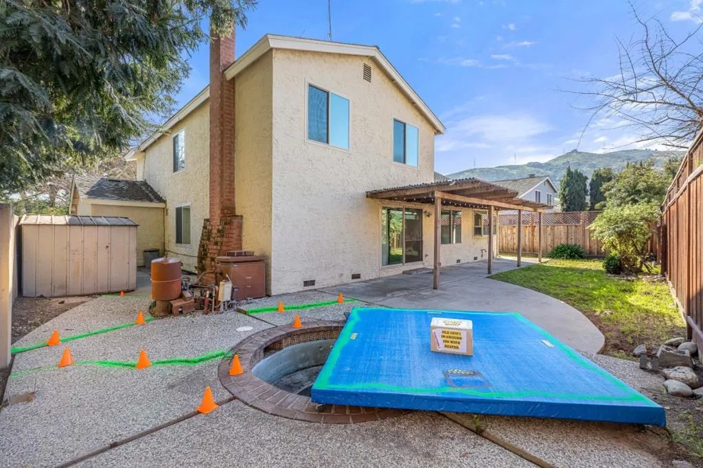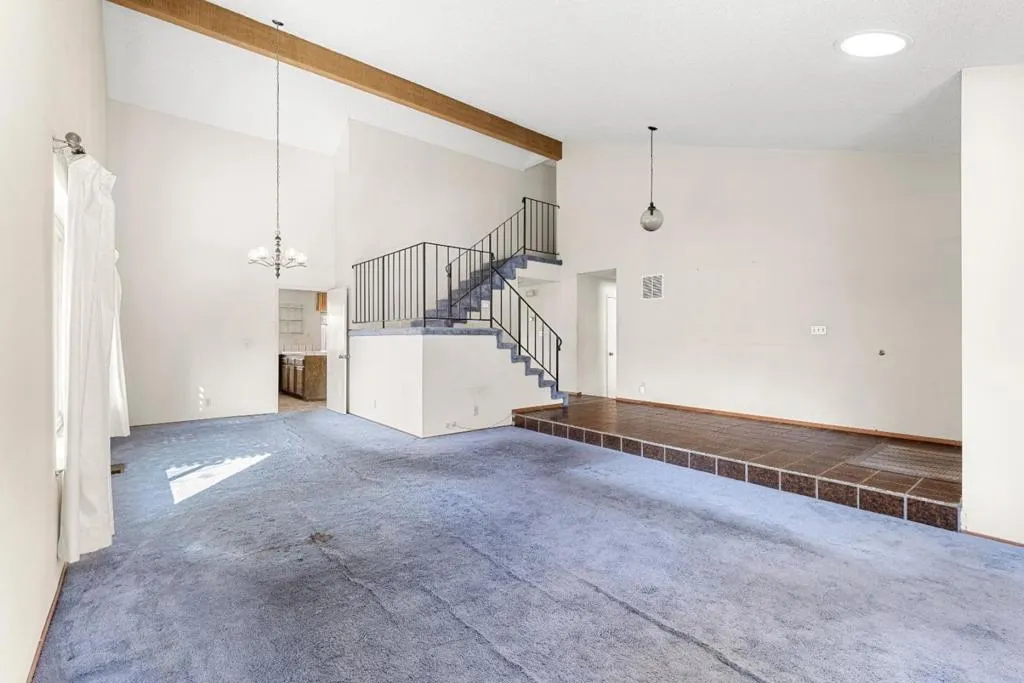 Discover this spacious fixer 5-bedroom, 3-bathroom 3-car garage home located along the ever-popular Paseo Walkway neighborhood with its wide promenade that is enjoyed by many. It features one bedroom & one full bath downstairs with 2,347 sq ft, this residence offers an opportunity for you and your family to bring your paintbrush & your ideas to make this fixer-upper property your forever home. The living room & formal dining room are washed in sunlight thru its sun tunnels and large windows. The impressive vaulted ceiling is enhanced by the switch-back staircase that reaches the other four bedrooms and baths. This spacious kitchen serves as a central gathering place for families, featuring an open layout, wraparound counter tiles, and a wall of storage next to the dinette. One upstairs bedroom was a tech room as you will see by the racks and workbench plus this room has an access door to additional storage area with racks and light. The master bedroom overlooks the cul-de-sac and walkway. The backyard wraps around from the side yard gate wide enough for vehicles or storage across the back to the old in-ground spa where the walkways show areas of separation and unevenness; watch your step. The large 3-car garage features racks & workbench