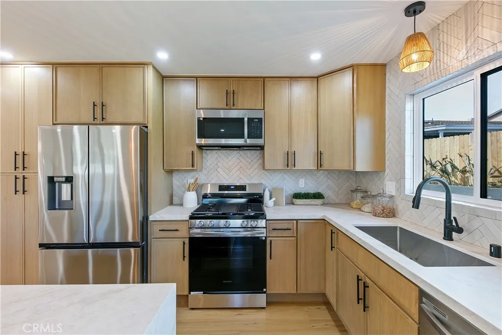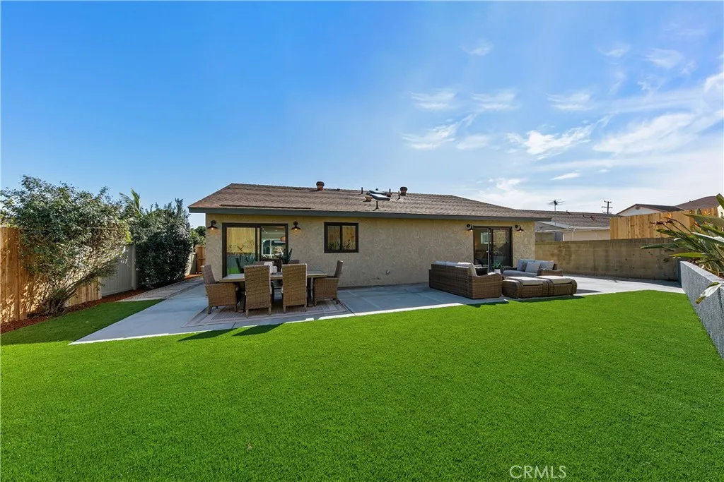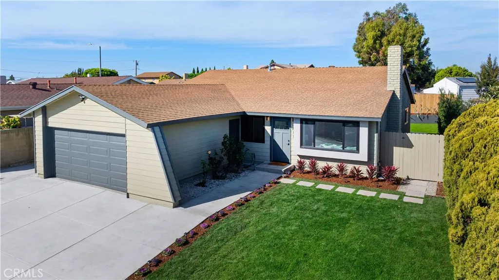 Tucked away on a quiet cul-de-sac in the sought after El Camino Village neighborhood, with underground utilities and an elementary school rating of 8/10 on greatschools.org, this fully remodeled home feels brand new, thanks to a meticulous renovation. From the new siding and paint, to the sleek skim coat walls, everything has been carefully considered. Micro cement adds a sophisticated and modern detail to the fireplace surround, the front exterior window trim, and the primary bathroom. Dual-paned windows fill the space with natural light, while stylish light fixtures and luxury vinyl flooring complete the look. The chef’s kitchen is as functional as it is beautiful. The spacious center island, topped with leather-finished quartz countertops is perfect for casual breakfasts or can be used as a buffet station at your next gathering. The open floor plan seamlessly connects the kitchen to the living and dining areas, making it perfect for entertaining. This home is built for the years to come, featuring a brand-new 200-amp solar-ready electrical panel and is also prepped and ready to support an electric car charger. The recently installed tankless water heater and new copper pipes add efficiency and reliability. The primary suite is a retreat of its own, boasting a walk-in closet, a Zen-like bathroom with timeless finishes, and a sliding door that opens to the private backyard. The backyard is ready for everything from quiet mornings to lively festivities and features low-maintenance turf, privacy fencing, and freshly poured concrete. Boasting skylights in two of the three bathrooms, generously sized bedrooms, and impeccable design touches throughout, this home elegantly combines style and comfort.