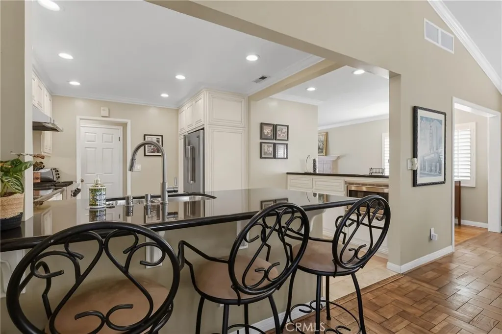 Set along a peaceful, flat street in the highly coveted Miraleste Pines neighborhood, this exceptional residence is being offered for the first time since 1970. Lovingly maintained by the same family for the last 56 years, it reflects true pride of ownership and a level of care that’s increasingly rare. This is not simply a home, but a legacy property ready for its next discerning owner. The curb appeal is immediate and refined. A manicured front lawn and classic covered brick porch create an elegant first impression. Inside, a formal living room welcomes you with a traditional fireplace and abundant natural light, offering a sophisticated setting for both intimate evenings and gracious entertaining. Original oak hardwood floors extend throughout much of the home, lending warmth, character, and timeless appeal. At the rear of the residence, a spacious, sun-filled family room impresses with vaulted ceilings, a dedicated dining area, and sliding glass doors that open seamlessly to the backyard. The layout is ideal for elevated indoor-outdoor living, allowing gatherings to flow effortlessly from inside to out. The thoughtfully upgraded kitchen is both stylish and functional, designed to meet the needs of the modern chef. Custom cabinetry, granite countertops, and stainless steel appliances — highlighted by a Viking range — create a polished, high-end aesthetic. A generous breakfast bar offers additional seating for casual dining or entertaining. The main hallway provides ample storage with multiple closets, enhancing everyday organization. The private primary suite features its own three-quarter bath, offering comfort and retreat-like privacy. Two additional well-proportioned bedrooms share a refreshed full hall bath, with recent improvements adding a clean, contemporary touch.
