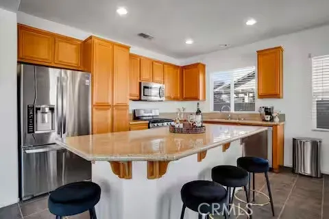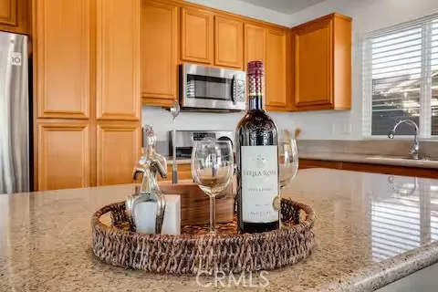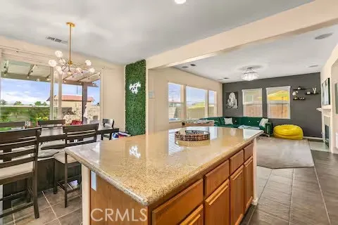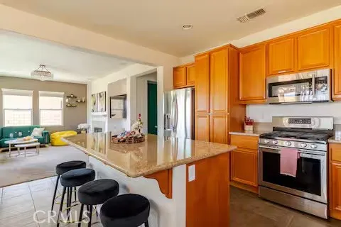 The home features an open family-room floor plan with a spacious kitchen complete with granite countertops, breakfast bar, and stainless-steel appliances and a water softener. The primary suite includes a walk-in closet and private ensuite bathroom. Enjoy a beautiful backyard, ideal for entertaining or relaxing after a day of desert activities.