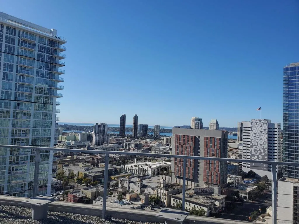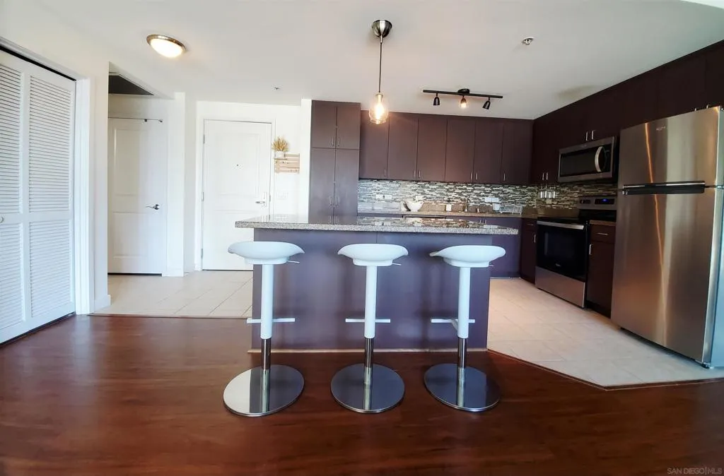 Beautiful, loft-style condo located in East Village at the Smart Corner building. This unit offers just under 900 square feet and is located on the 8th floor. The unit has a wood floor, a private balcony, and exposed concrete elements. The kitchen has granite countertops, European cabinetry, and stainless steel appliances. The unit’s spacious bathroom has porcelain-tiled flooring and granite countertops. There is a washer/Dryer in the unit, a central heating, and A/C. Building amenities include a Fitness Center, a rooftop deck/lounge that has almost 360-degree views of San Diego and the bay, a BBQ area, and a spa. One assigned underground parking space. Balboa Park, PetCo Park, the Gaslamp Quarter, and nightlife are all within walking distance to the unit. It is close to public transportation, all major freeways, and minutes away from San Diego Airport.