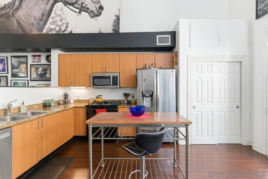 Live at the heart of it all in this stunning top-floor East Village condo in the gated Union Square community. Soaring 19-foot ceilings, designer upgrades, and bright interiors define modern city living. The chef’s kitchen features energy-efficient appliances & opens to spacious living areas and a sunny balcony. The loft suite offers a bonus office and custom window-seat & closet built-ins, in-unit laundry, secure parking, and premier amenities—steps from Petco Park, Gaslamp, and East Village Green Park.