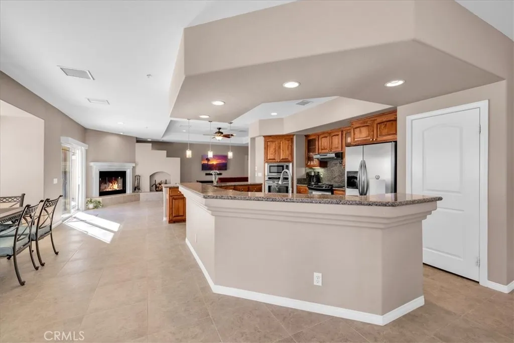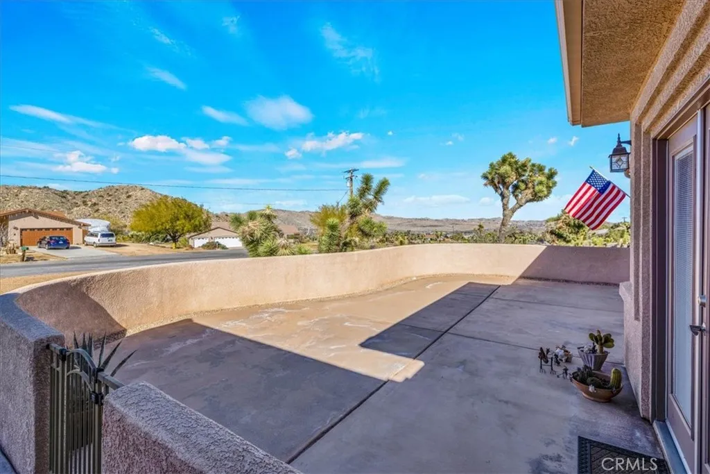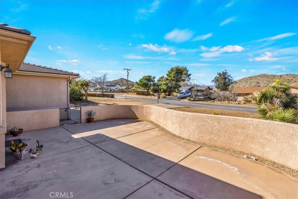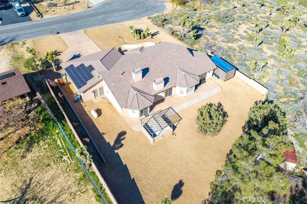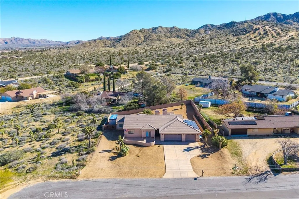 Welcome to 8443 Bannock Trl, a beautiful and meticulously maintained desert home nestled at the end of a quiet cul-de-sac in the desirable Juniper Terrace neighborhood of Yucca Valley. This stunning home features 2,700 square feet of living space with 3 bedrooms, 3.5 bathrooms, *PAID SOLAR* and numerous upgrades throughout. As you enter into the home’s Great Room you’ll find high ceilings with recessed lighting, earth-toned tile flooring and several large windows that let in an abundance of natural light. The living room is anchored with a cozy wood-burning fireplace and flows effortlessly into the kitchen and formal dining area. The well appointed kitchen is complete with granite countertops, amble cabinet space, a walk-in panty and stainless steel appliances (including 2 ovens, a built-in microwave and a wall mounted pot filler). Just off the kitchen is additional living space that could be used as a family room, den or game room with the existing pool-table available to convey. The spacious primary bedroom features a gas fireplace, large walk-in closets, a private patio door leading directly to the backyard and an ensuite bathroom with a dual sink vanity, soaking tub and separate walk-in shower. The 2 additional rooms are of generous size and include carpeted floors, ceiling fans and full en-suite bathrooms, complemented by an additional half bath for guests. Practical features include a laundry room, linen and coat closets, and a built-in office area ideal for remote work or study. Outdoor living is just as impressive with a front courtyard accessible from one of the secondary bedrooms, a fully enclosed backyard with split-face block walls, RV parking, and an electrical hookup for a spa. Not to mention the oversized 3-car garage, cement tile roof, seamless exterior gutters and the HVAC and water heater were both replaced in 2020. The undeveloped neighboring parcel provides a peaceful desert setting with room to live, work and entertain. Come take a look & let this home’s charming allure do the rest, your new desert home or weekend retreat awaits!