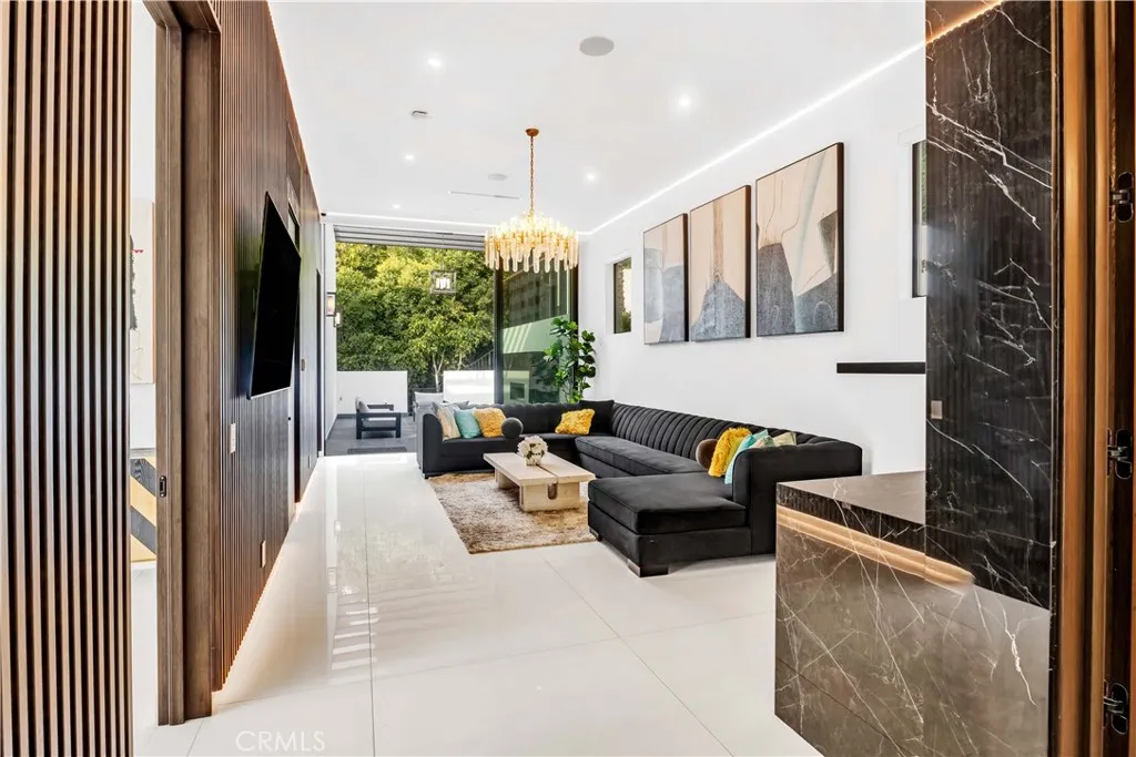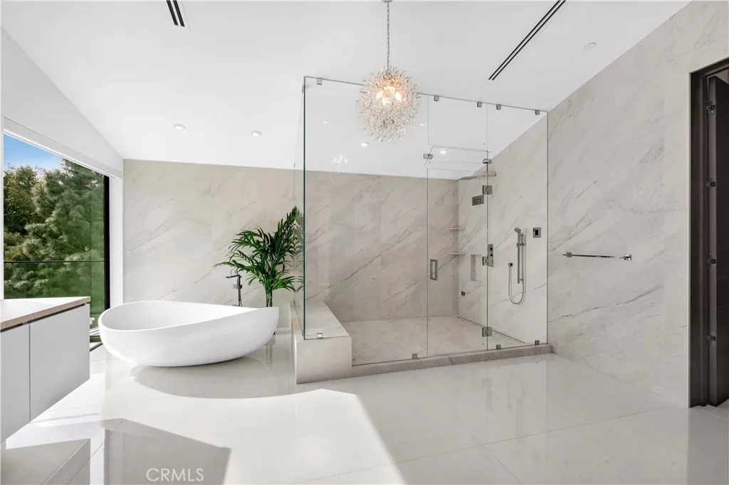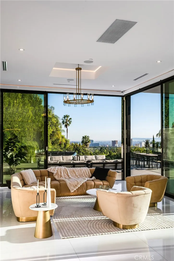Additional highlights include a state-of-the art theater, fully equipped fitness center, wet and dry saunas, and a private salon/spa room. Outdoors, a striking infinity edge pool commands dazzling city views. A truly unique feature of the property is its massive subterranean garage and outdoor space, which can accommodate almost 50 vehicles, a rarity in Bel Air. This extraordinary estate presents a rare opportunity to experience uncompromising design, comfort and world class luxury.