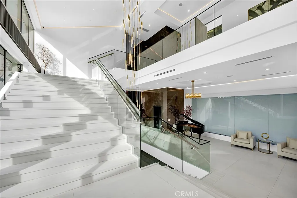 A breathtaking expression of sleek, modern architecture and elevated luxury, this newly constructed gated estate rests along Bel Air’s prestigious Billionaire’s Row. Beyond the impeccably landscaped courtyard is an extraordinary 20,000 square foot interior, masterfully designed to capture sweeping unobstructed views surrounded by some of the world’s most valuable real estate. Created for grand scale entertaining, the seamless multi-level floor plan reveals expansive living spaces defined by dramatic linear fireplaces, soaring ceilings, and walls of automated glass that effortlessly merge indoor and outdoor living.
