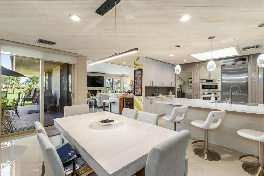 – Price Improvement – Welcome to 10 Lafayette Drive! This highly coveted, recently remodeled Shaughnessy floorplan offers 2,940 square feet of contemporary living space accompanied by gorgeous west mountain views. As you enter the spa-like courtyard you are greeted with lush, mature landscaping, a private pool and spa, and a lounge area with a fire feature. It’s the perfect place to soak in the desert sun and admire the beautiful sunsets. Custom glass double doors welcome you inside of the home and lead you into the main living space. The open floorplan and high ceilings create a light and bright space that opens out to the back patio that has stunning southern mountain views. The kitchen is equipped with custom cabinetry, quartz counter tops, and Bertazzoni stainless-steel appliances. The adjacent dining area opens out to its own private patio providing additional dining and/or sitting space. All bedrooms have full ensuite baths, oversized closets, and private patio areas. This meticulously maintained home includes leased solar, Amblin windows & doors, custom window treatments, 24×24 porcelain tile flooring, and resurfaced pool. The home encompasses luxury, comfort, spacious living, and gorgeous golf course and mountain views. Residents of The Springs Country Club enjoy access to numerous amenities, including multiple pools and spas, a luxurious clubhouse with both fine and casual dining options, as well as golf, tennis, and pickleball courts. The community also boasts a fitness center to maintain an active lifestyle. Start enjoying your desert lifestyle today!
