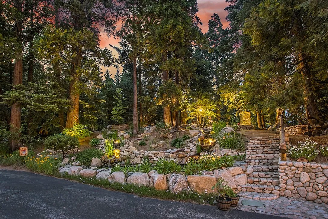 Privately Gated! All One Level Ranch Style Showplace! Situated on approximately 2.31 Acres! Easy Access 4 Car Garage! Deep Well Water irrigation system! Waterfall and Pond! Family Picnic Plateau with outdoor kitchen, Firepit and Custom Smoker. If you are an RV Lover, you have found the right place!! Prior Sellers thought of everything to accommodate their RV. The Family Lodge has 4 Bedrooms, 3 Bathrooms, a Formal Dining Room will seat 10 Comfortably. The Grand Scale Kitchen with Chefs Dream Island + Top Appliances with separate Craft Room! A delightful conversation Sunroom! Whole House Music/Speaker System inside and out. Grand Scale Trex Deck. A covered Porch for Lazy Afternoons. Central Heating and Air Conditioning. Solar Panels! Large Build Up Storage Space. Fruit Trees and Berry Bushes! Landscaped to compliment the forested setting. Giant Trees! Buildable expansion Space and Zoned for Horses! Seller has installed custom concrete driveway which includes multi vehicle parking. Lush Green Near 120 Acred Forest Service Land. Magnificent views of the property from all points. Not another property like this one. Just minutes to Lake Gregory and Shopping. Located in an undiscovered area of Twin Peaks adjacent to Lake Arrowhead. WOW!!