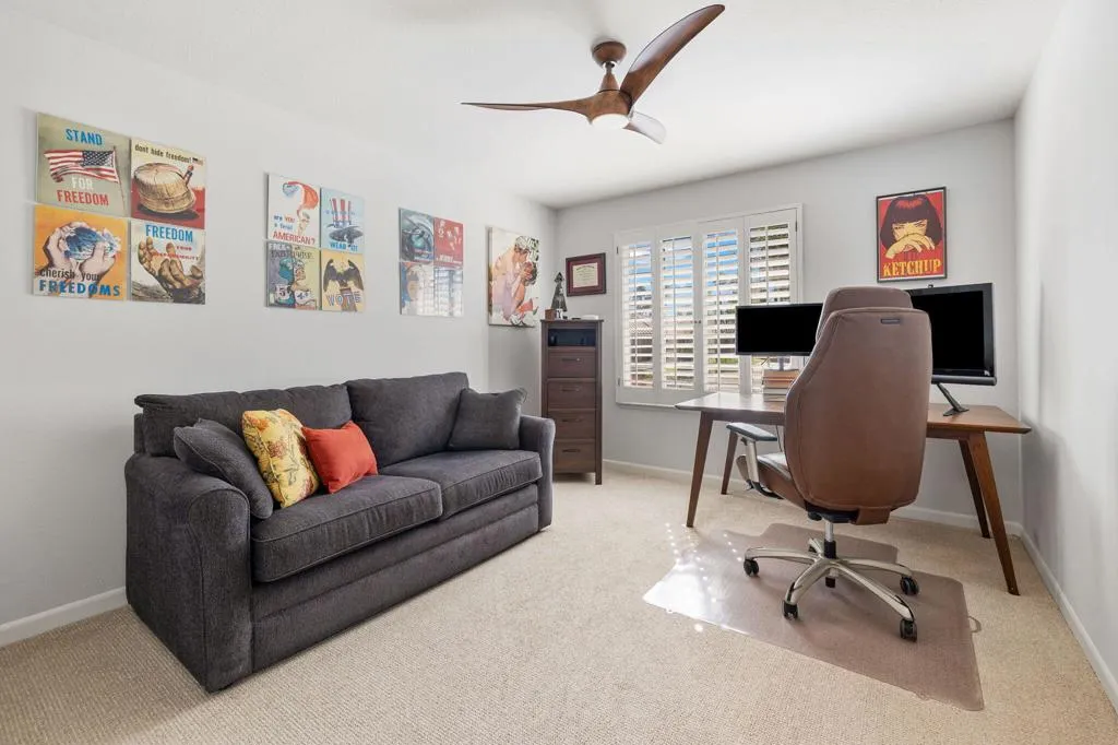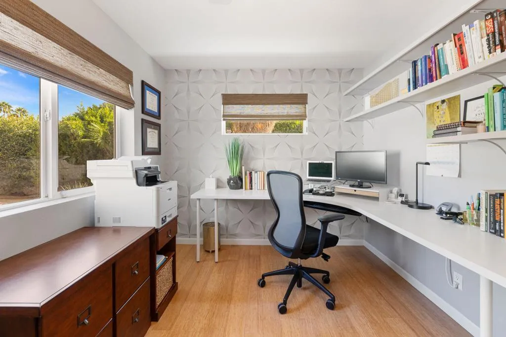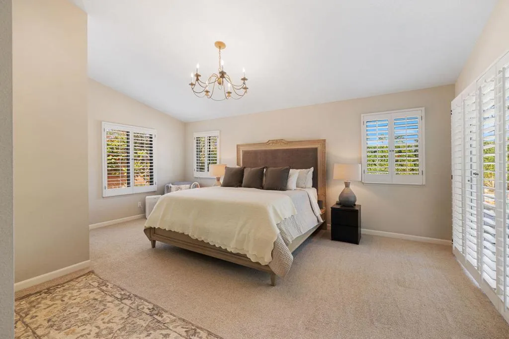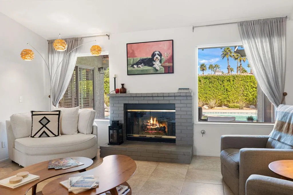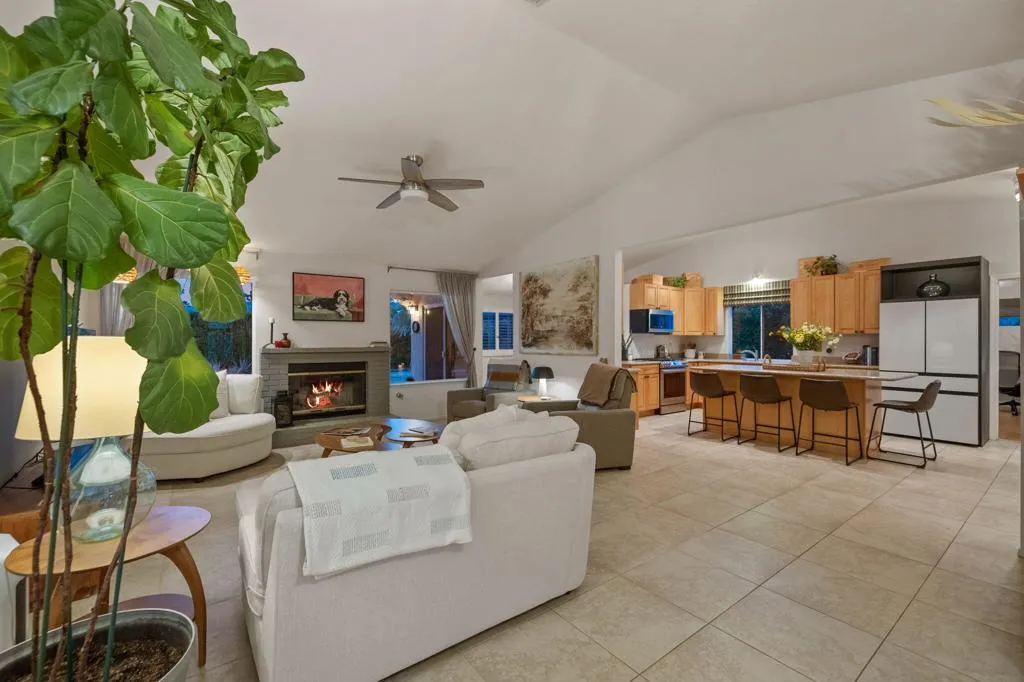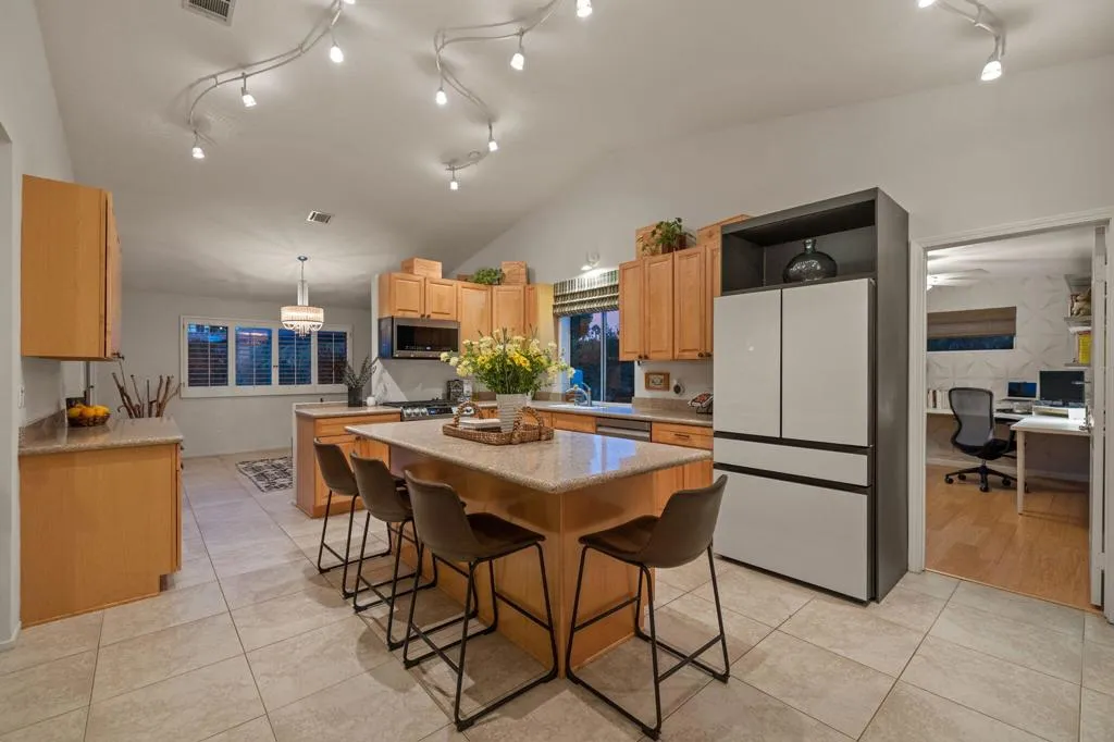 Located in the gated community of Regency Palms in Palm Desert, this beautifully updated single-family home offers 4 bedrooms and 3.25 bathrooms with a spacious open-concept design and vaulted ceilings that create a bright, airy feel throughout the main living areas. The kitchen is thoughtfully designed with a large center island, new appliances, abundant cabinetry, and a seamless connection to the living and dining spaces, creating the perfect setting for both everyday living and effortless entertaining. New carpet adds a fresh, modern touch, while newly completed landscaping in both the front and back yards enhances the home’s overall appeal. The primary suite offers a true sense of retreat, featuring a renovated bathroom with a soaking tub and walk-in shower, along with a redesigned walk-in closet that provides both style and functionality. Step outside to a private backyard designed for enjoying the best of desert living, complete with a pool, spa, and freshly painted deck that is ideal for relaxing evenings or hosting friends and family. Additional highlights include a two-car garage plus a separate golf cart garage with recently epoxied floors, and low monthly HOA dues that include cable and Wi-Fi. With its upgrades, thoughtful improvements, and prime Palm Desert location, this home offers comfort, efficiency, and lifestyle all in one. FULLY OWNED AND PAID SOLAR – 30 Panels. Additional information regarding updates and improvements in the public documents.