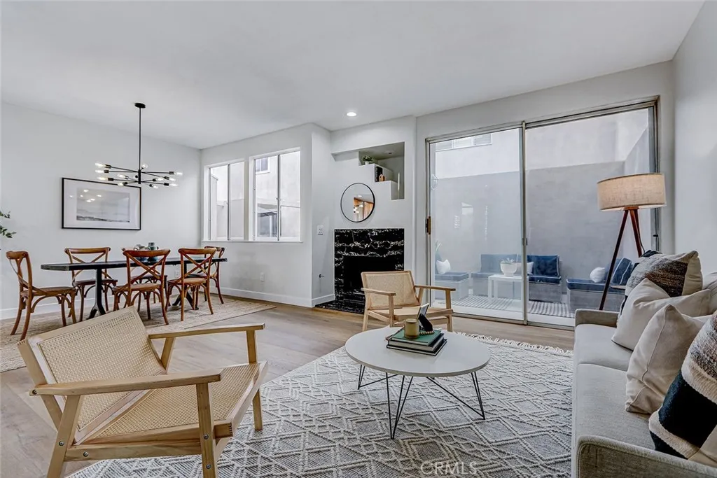 Spanning 1,634 square feet, the home offers three bedrooms, a versatile bonus room, and 2.5 bathrooms, all thoughtfully crafted to balance comfort and functionality. Recent upgrades, including new hardwood floors, appliances, a heater, and a water heater, ensure a modern and move-in-ready experience. The open-concept living area is bathed in natural light, with a skylight and a cozy fireplace adding warmth and charm. A spacious patio extends seamlessly from the living room, offering the perfect setting for entertaining friends or unwinding after a day at the beach.