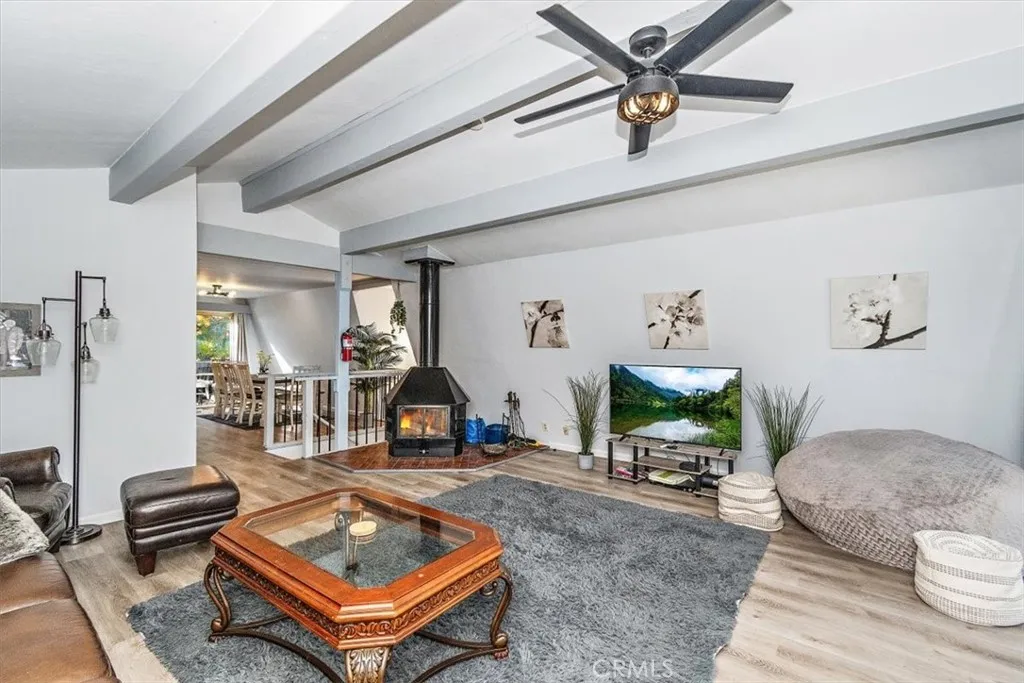 A rare find at this price point in Green Valley Lake, this home features an attached two-car garage and a private driveway. Embrace the tranquility of your charming mountain retreat, nestled in the heart of the peaceful and picturesque Green Valley Lake. This cozy 2-bedroom, 2-bath home offers 1,275 sq ft of comfortable living space, ideal as a weekend retreat or as a short-term rental. The open concept floor plan is filled with natural light and features a spacious kitchen, a wood burning stove, and stunning views of the surrounding forest. Outside, you’ll find multiple decks perfect for enjoying the fresh mountain air and entertaining guests. Located just minutes from hiking trails, fishing spots, and the picturesque lake, this home offers the ultimate escape from city life. Don’t miss your chance to own this hidden gem in Green Valley Lake! Property currently has a short term lodging permit. Bonus, a basement that can be transformed into additional living space and or a primary bedroom. Home is being sold fully furnished, allowing for immediate move-in or rental use.