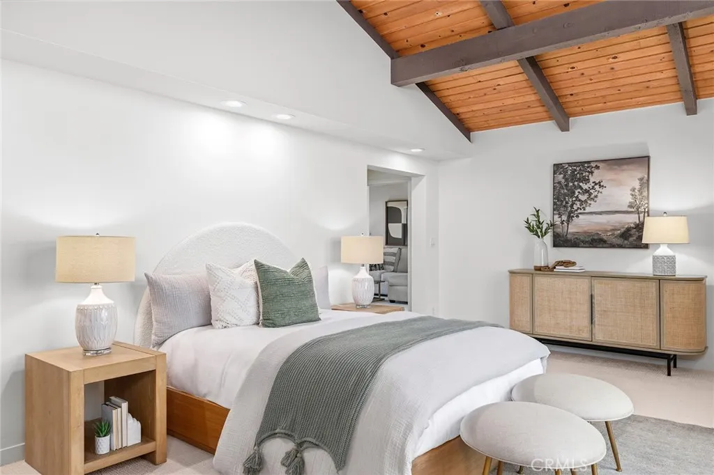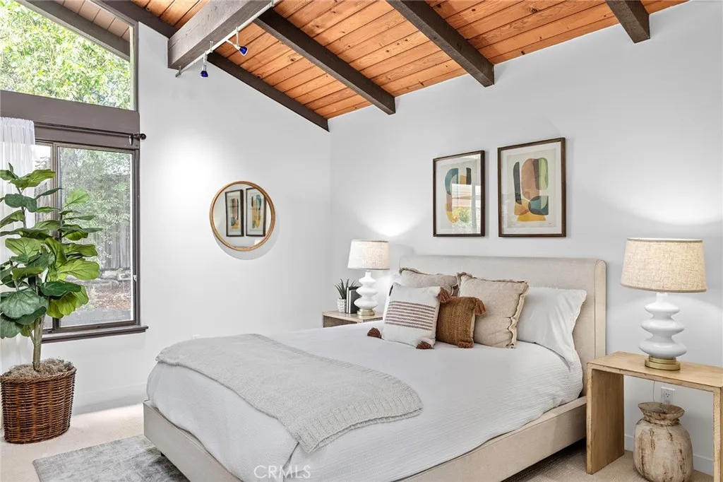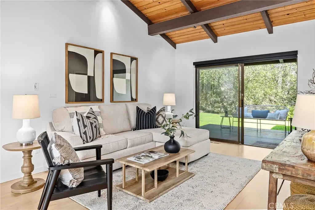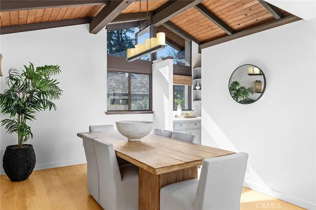 Discover a property defined by a thoughtful study in architectural harmony. Elevated on the lot to take advantage of the natural contours of the land, this mid-century modern inspired Valmonte residence offers a seamless balance of indoor and outdoor living. Defined by soaring vaulted ceilings and floor-to-ceiling windows, the home features several distinct indoor and outdoor living areas. The main living room is bathed in natural light, centered around a wood-burning fireplace, and opens to a balcony with views of twinkling city lights at sunset. The well-appointed kitchen overlooks a private outdoor dining patio and flows effortlessly into the formal dining room. A separate family room opens to two additional outdoor spaces, including a large deck and a flat, grassy yard surrounded by mature landscaping and a variety of citrus trees. The oversized lot offers ample room for a pool; and don’t miss the hot tub tucked away in its own private corner of the property. When the day is over, the primary suite is the perfect space to unwind, featuring a spa-inspired bath with a walk-in shower, soaking tub, dual vanities clad in natural wood, and direct access to a roomy walk-in closet. The two additional guest bedrooms receive plenty of filtered light and are generously sized. Delightful surprises await on the lower level: Surprise #1- A dedicated private office, the perfect spot to work undisturbed; Surprise #2 – an oversized 2-car garage with room for all your toys; and Surprise #3 – a built-in storage area because you can never have enough storage space! Equipped with air conditioning, rich hardwood floors, and refined details at every turn, this home is perfectly situated to enjoy Valmonte’s idyllic weather. With quick access to the best of the South Bay and close proximity to the PVE trails and the PV Golf and Tennis Clubs, this move-in-ready home is a rare opportunity that maximizes its spectacular setting.