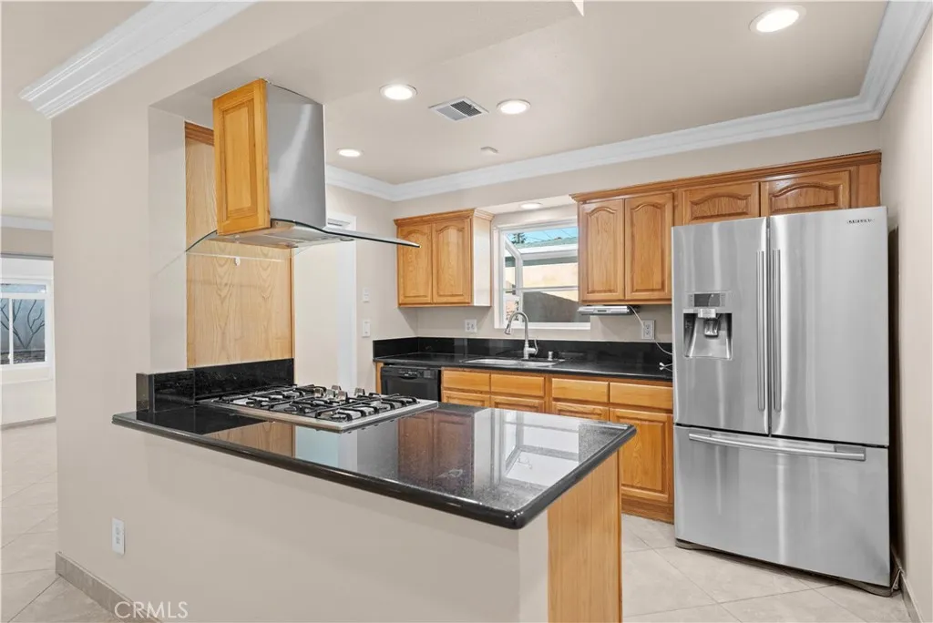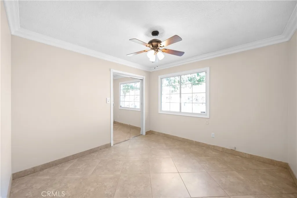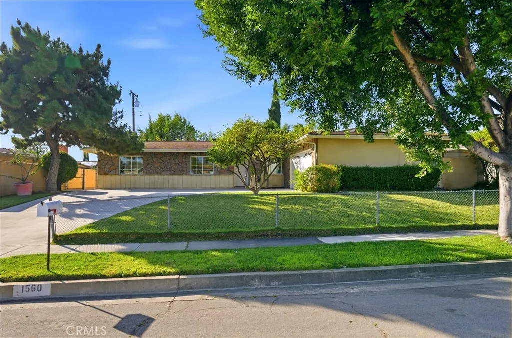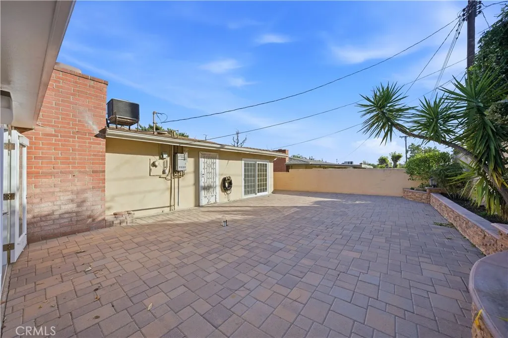 Single-story 3-bedroom, 2-bath home situated on a cul-de-sac with an attached 2-car garage and expansive paver courtyard backyard. This well-maintained residence features an open floor plan with tile flooring throughout the main living areas, crown molding, recessed lighting, and a brick fireplace in the living room. The upgraded kitchen offers granite countertops, a breakfast counter and ample cabinetry. The dining area flows seamlessly into the living space, creating an ideal layout for everyday living and entertaining. The primary bedroom includes mirrored closet doors, ceiling fan, sliding glass door access to the backyard, and an en-suite three-quarter bathroom with walk-in shower, granite vanity, and updated fixtures. Two additional bedrooms feature ceiling fans and mirrored closet doors. The full hall bathroom includes a tub/shower combination with tile surround and modern vanity. A standout feature of the property is the fully enclosed sunroom with tile flooring, recessed lighting and walls of windows, providing abundant natural light and flexible space for recreation, entertaining, or a bonus living area. The backyard is designed for low maintenance and privacy, complete with block wall fencing, raised stone planter beds, mature landscaping, and extensive paver hardscaping. Additional highlights include fresh interior paint, dual-pane windows, central HVAC, sliding glass doors, and a spacious driveway with curved approach. Conveniently located near parks, schools, shopping, dining, and major commuter routes.