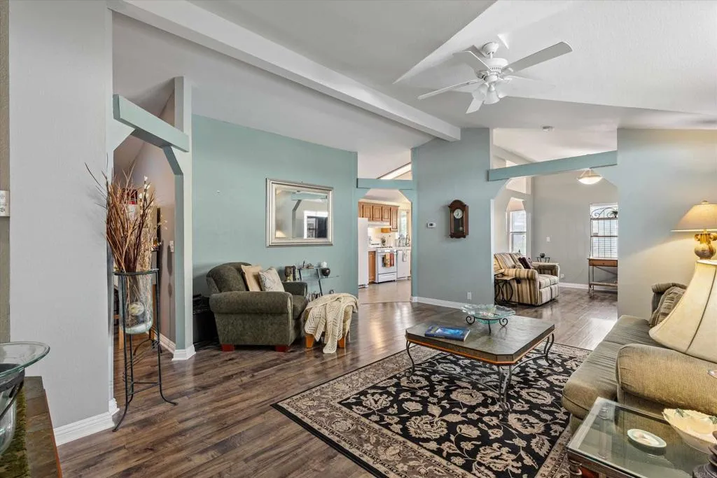 2BR + Den home in desirable 55+ community with rent control and low space rent (approx. $695/mo). The versatile den can easily serve as a 3rd bedroom, office, or hobby room. Pride of ownership throughout with vaulted ceilings, drywall interior, and abundant natural light from a skylight. Spacious primary suite features a walk-in closet and ensuite bath with walk-in Jacuzzi tub. Central A/C plus four ceiling fans for year-round comfort. Enjoy the raised covered porch, brick patio, fenced yard, tangelo tree, automatic sprinklers, and storage shed. Most furnishings may convey. Town & Country is a pristine 55+ community with an inviting clubhouse, pool & spa, sauna, exercise room, billiard room, game room, library, Kitchen, dog park, shuffle board, planned events and more! One pet with a 20 lb weight limit is welcome. Walk to nearby shopping, dining, transportation and bus stop.