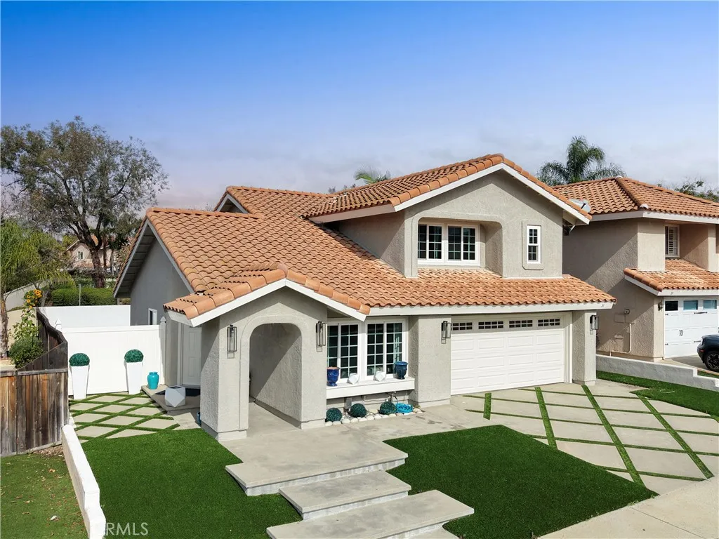 GREAT LOCATION!! A beautiful 3 bedroom, 2 +1/2 bath home in the VISTA LADERA tract is a MUST SEE! Spacious living room and dining area are accented with cathedral ceilings. Gorgeous UPDATED kitchen with stainless steel appliances, an open floorplan to the den with fireplace and sliding glass doors to the backyard. All bedrooms upstairs. Primary suite with dressing area, spacious closets and dual sinks. Updated flooring throughout. Recently UPGRADED hardscape, exterior lighting and drought tolerant, LOW MAINTENANCE landscaping. Attached 2 car garage with laundry hook ups.