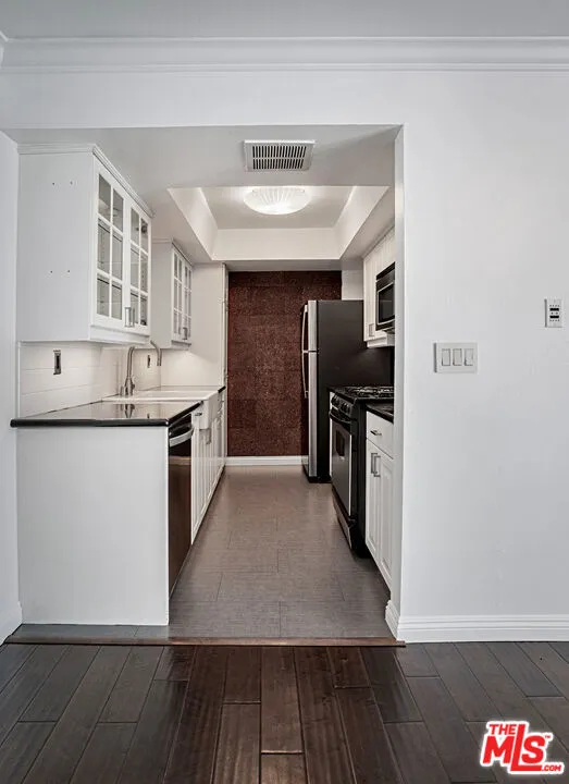 Welcome to this bright, move-in-ready townhome-style condo ideally located in the heart of Sherman Oaks. Just moments from Ventura Boulevard’s renowned dining, shopping, and entertainment, with easy freeway access nearby, Unit 4 offers the perfect blend of comfort, convenience, and thoughtful design within a well-maintained community. The main level features an inviting open-concept living space with warm wood floors and abundant natural light – ideal for both everyday living and entertaining. The adjacent dining area flows effortlessly into the updated kitchen, complete with stone countertops, stainless steel appliances, and ample cabinetry. Upstairs, the spacious primary suite features a large walk in closet and an updated ensuite bathroom, offering a comfortable private retreat. The second bedroom is also generously sized and is conveniently located near a full hallway bathroom, making the layout well-suited for families, guests, roommates, or a dedicated home office. Additional highlights include a private outdoor patio off the living room, two secured gated parking spaces, an on-site community laundry room, and a smaller, well-kept building with low HOA dues. This is a wonderful opportunity to own a stylish and comfortable home in one of Sherman Oaks’ most desirable pockets – close to everything, yet quietly tucked away.