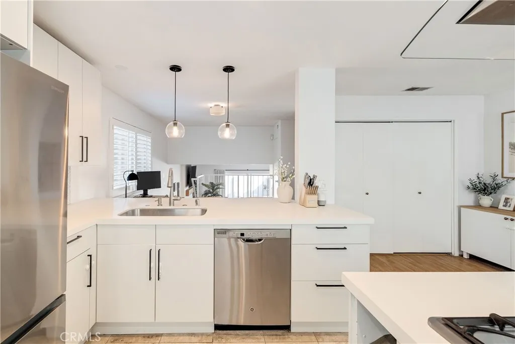 Welcome home to this beautifully updated end-unit townhome in the heart of North Redondo Beach. Offering 1,435 square feet, this 2-bedroom, 2-bath residence is truly turnkey. As soon as you enter through the front door, you’re greeted by an abundance of natural light, making the entire space feel bright and welcoming. The open living space is anchored by a cozy fireplace and seamless access to a large, turfed private patio—perfect for indoor-outdoor living and entertaining. The remodeled kitchen features new stainless-steel appliances, a warming drawer, built-in wine fridge, and an adorable breakfast nook. Both bedrooms are generously sized, with the primary suite boasting an en-suite bathroom and walk-in closet with custom built-ins. Additional highlights include hardwood flooring, new bespoke lighting fixtures throughout, and an attached 2-car garage with ample storage. Ideally located near award-winning schools, the beach, and beloved local favorites like Georgia’s and Tommy & Atticus, this thoughtfully updated townhome delivers move-in ready comfort and an unbeatable South Bay lifestyle.
