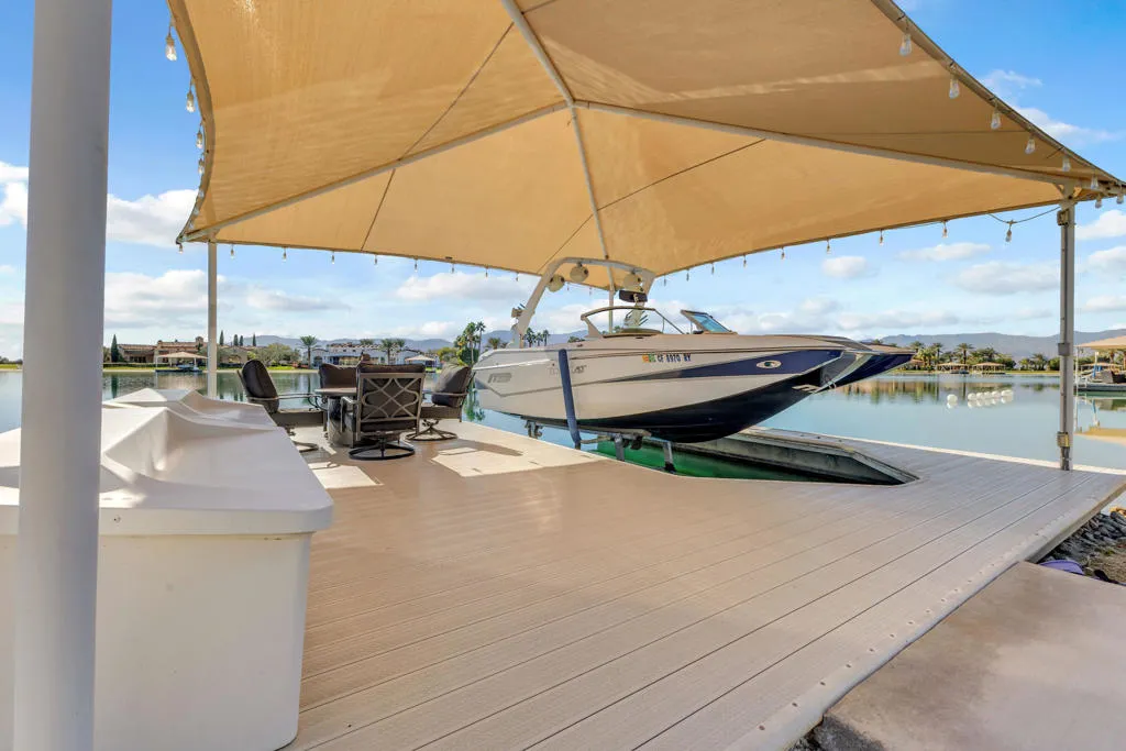 March and April for other pricing contact us… Dreaming of the perfect playground with water skiing, wakeboarding, boating, sailing, and fishing? This is it! This exquisite Tuscan-style estate offers unparalleled views of Coachella Valley’s exclusive private recreation lake, giving you a front-row seat to water sports and outdoor living from sunrise to sunset. With 5 spacious bedrooms, 5.5 baths (including a Casita), all you need is your swimsuit and a desire to make this stunning home your own.Almost every room showcases breathtaking lake views, and the expansive Great Room is an entertainer’s dream, featuring a gourmet kitchen with stainless steel appliances, granite countertops, and elegant cabinetry. Outside, enjoy endless outdoor living with a covered patio, fireplace, misters, pool, spa, and a sandy beach just steps from your door. Plus, your private boat dock offers easy access to the water–simply lower your boat using the included electric lift and enjoy all the adventures this water wonderland has to offer.