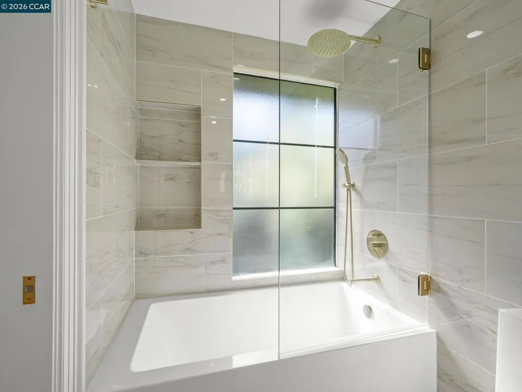 This custom-designed pied-a-terre in Walnut Creek showcases modern Parisian elegance in a prime location. Renovated to perfection, the Larkey townhome features a glass and hardwood stairwell overlooking a living room with a floor-to-ceiling black stone fireplace. The entry level includes a half bath/laundry room and a sleek kitchen with a quartz island, wine fridge, gas range with hidden hood, floor-to-ceiling cabinets, and built-in banquette seating. Upstairs, the primary suite boasts custom paneling, a spacious custom closet, and a dual-entry bath with a soaking tub, double vanity, and quartzite countertops. The second bedroom offers a large closet and a stylish reading nook with storage. Original black windows add timeless character. The private patio, surrounded by mature foliage, includes an upsloped yard, and two storage sheds. Additional features include central heat & AC, a community pool, carport, and guest parking. Conveniently located near Larkey Park, trails, freeways, and downtown, this home provides the perfect blend of style and convenience. *Some photos are virtually staged