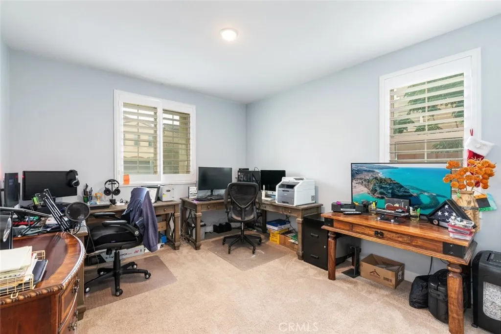 One of the home’s most impressive features is the 18-foot stackable sliding glass patio door that completely opens to the covered California Room, delivering seamless indoor-outdoor living. Step into your private backyard retreat with a sparkling pool and spa—perfect for relaxing evenings or hosting gatherings year-round.