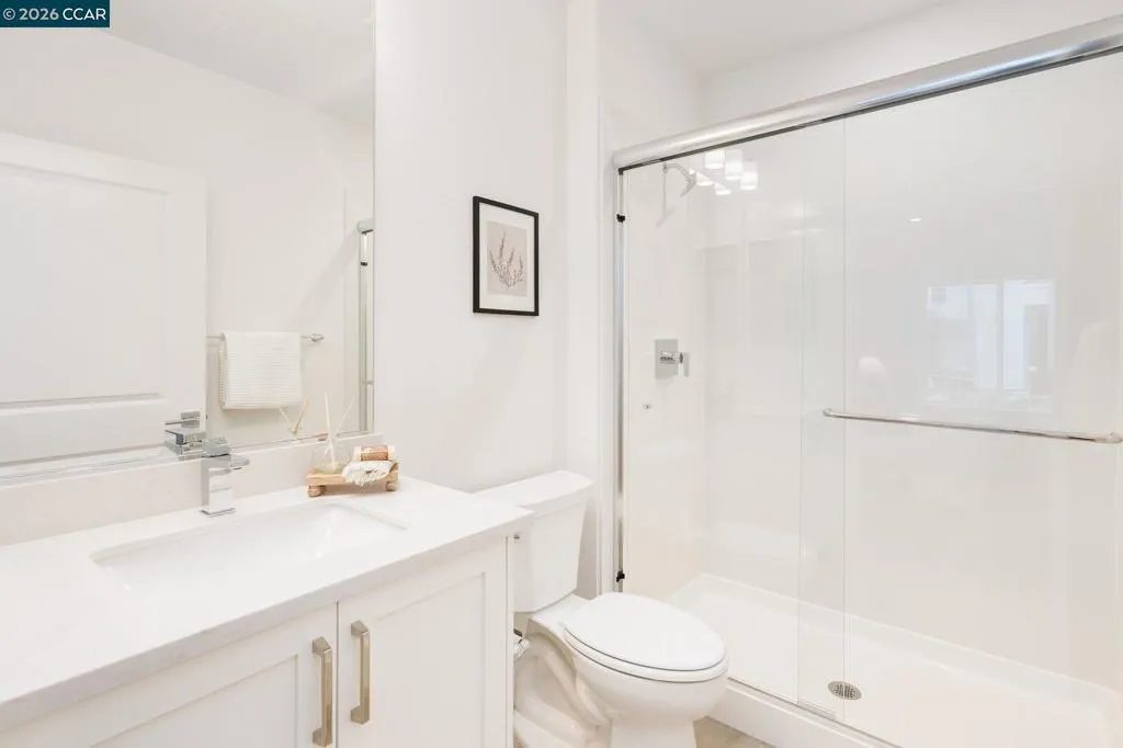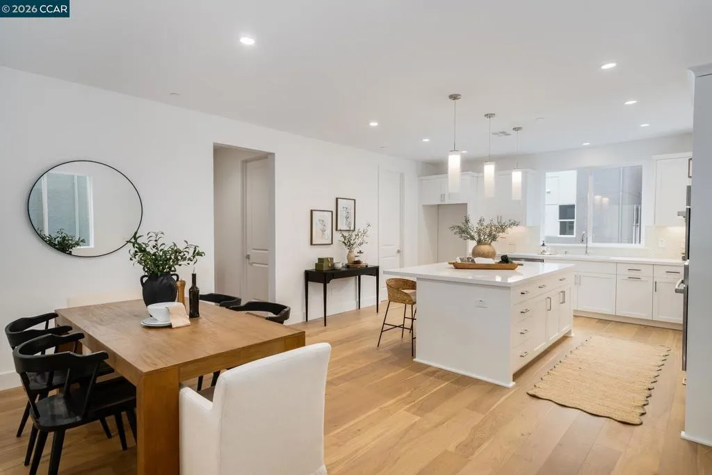 Move-in ready new construction home by award-winning SummerHill Homes, in highly desirable City Village community. Three-story row home w/ over $67,000 in upgrades blending contemporary architecture with curated designer finishes. Featuring three levels of modern living, this home showcases an open-concept main level with expansive living & dining areas, enhanced by wide-plank hardwood flooring in a warm Vintage Wicker tone. Chef’s kitchen has Bosch 800 Series ss appliances, induction cooktop, convection oven, speed microwave, stainless hood & dishwasher. White shaker cabinetry, polished nickel hardware, quartz slab countertops & full-height vertical herringbone mosaic backsplash create a clean, sophisticated aesthetic. Throughout the home, recessed LED lighting, under-cabinet lights, CAT6 structured wiring, & pre-wiring for security system. Snowbound interior paint & smooth panel doors enhance the light, airy feel. Spacious primary suite w/ upgraded Piedrafina vanity surfaces, polished chrome fixtures & framed shower enclosure. Secondary baths feature coordinated finishes, tile flooring & quality Kohler fixtures. Plush Anderson Tuftex carpet adds comfort to select living areas. City Village offers convenient access to shopping, dining, top-rated schools & freeway access.