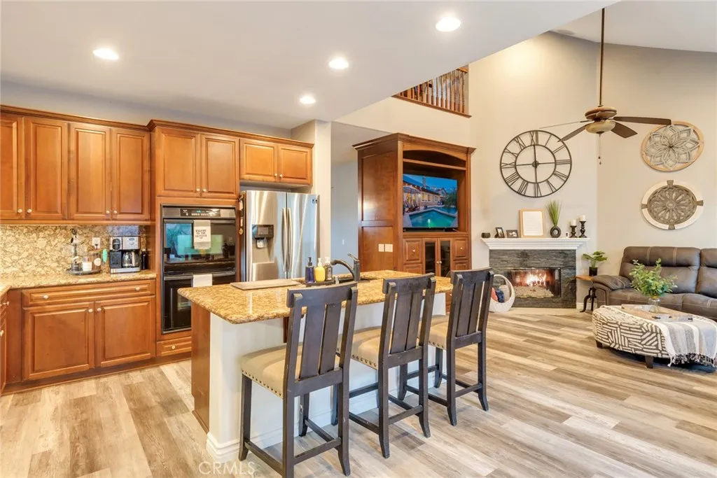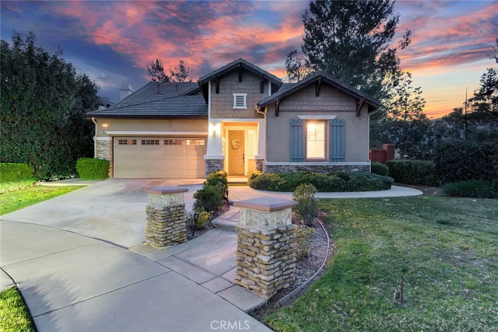 Tucked Away at the End of a Quiet Cul-De-Sac in the Desirable Sycamore Creek Community, this Delightful 4 Bedroom, 3 Full Bath Home Offers 2,759 Square Feet of Well Designed Living Space that has a Unique Layout and Inviting Flow. As you Enter, You are Welcomed by a Downstairs Guest Bedroom with a Full Bathroom, Ideal for Guests or Multigenerational Living. Nearby is the Laundry Room with a Utility Sink and Storage. The Open Sitting/Living Space with an Adjacent Dining Area, Perfect for Everyday Living and Entertaining. Down the Hall, Generous Storage and Closet Space Lead to the Primary Bedroom, Situated on the Main Level with Views of the Backyard. The En Suite Bathroom Includes Dual Sinks, A Soaking Tub, a Separate Shower, Privacy Toilet and a Spacious Walk In Closet, Creating a Private Retreat. At the Back of the Home, the Open-Concept Kitchen and Family Layout are the Heart of the Home and Open to the Backyard Pool Area. The Kitchen Features Double Ovens, a Gas Cooktop, Microwave, Dishwasher, a Large Island with Seating and an Abundance of Cabinetry, along with Room for a Casual Dining Table. The Kitchen Opens Seamlessly to the Family Area, which Offers a Built In Media Cabinet, Fireplace and Vaulted Ceiling. Upstairs, a Spacious Loft Overlooks the Main Living Areas Below, Providing Flexible Use as a Media Room, Office or Secondary Living Space. Two Additional Bedrooms are Located on Opposite Sides of the Loft. A Full Bathroom with Tub/Shower Combination and Linen Storage Completes the Upper Level. The Double Doors from the Kitchen Lead to the Backyard Oasis Highlighted by A Beautiful Pool and Cabana, Great for Outdoor Relaxing/Entertaining. The Home Comes with a 3 Car Tandem Garage with Overhead Storage. Solar was Installed in 2022, with the Buyer to Assume the Existing Solar Lease. Enjoy a Low HOA, Close Proximity to the Sycamore Creek Clubhouse and Amenities, Easy Access to the 15 Freeway and Nearby Shopping. This Home is a Must See!