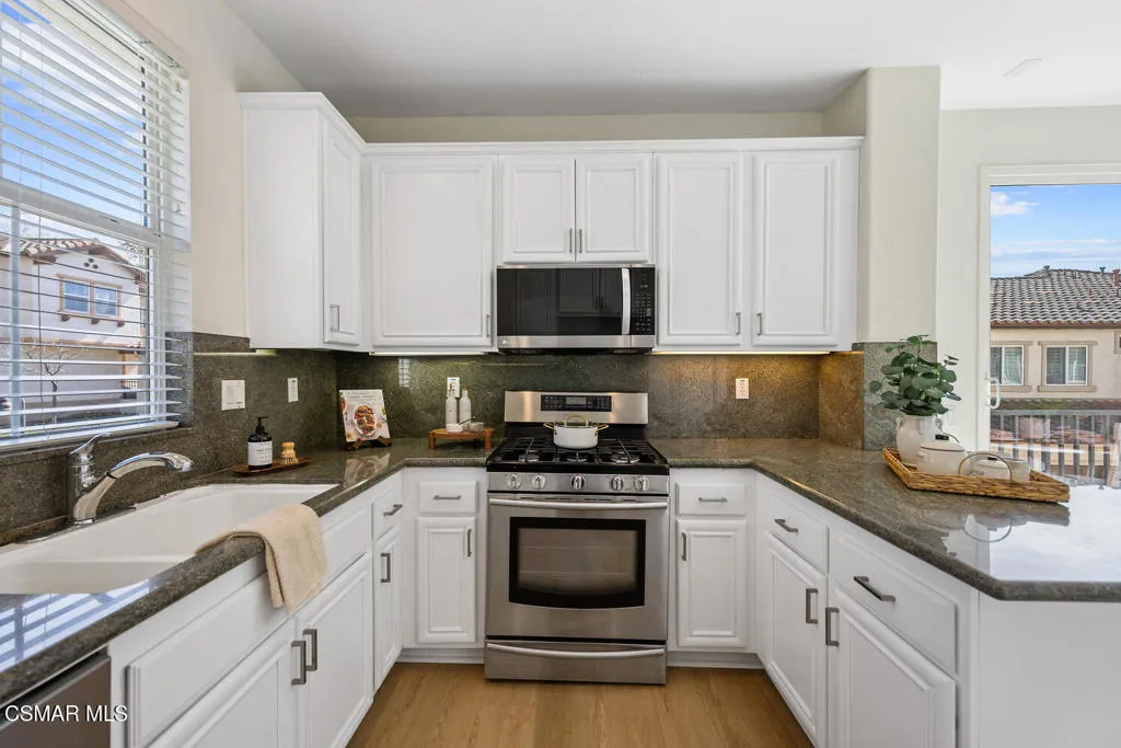 Buyer to participate in sellers 1031 exchange. Subject to seller finding replacement home. One seller has an active Real Estate License.Buyer to perform due diligence regarding square footage, zoning, and verification of all information.Ready to move in Aldea Townhome in Dos Vientos. This bright and spacious end unit offers three bedrooms, two-and-a-half bathrooms. The main living level presents you with a large living room with fireplace, dining area, den, and kitchen with white cabinetry, granite countertops, stainless steel appliances and a balcony. The guest bath completes this level. The upper level offers the primary suite with views of the mountains, an ensuite bathroom with dual vanities, soaking tub, and separate shower. Walk-in closet. Two additional bedrooms share a recently remodeled full bathroom. The entire first level has been upgraded with luxury laminate plank flooring. Upstairs has new carpeting. This unit has been freshly painted throughout. The unit features a spacious attached two-car garage on the lower level, complete with washer and dryer hookups and ample room for additional storage. Aldea Dos Vientos Townhomes provides two pools, spas, and a clubhouse. The Via Katrina pool has breathtaking views of the mountains. Aldea is adjacent to Sycamore Park & The Village Town Center. It is located in close proximity to Sycamore Canyon K-8 School, one of Ventura County’s top rated schools and very close to the Dos Vientos Community Center.