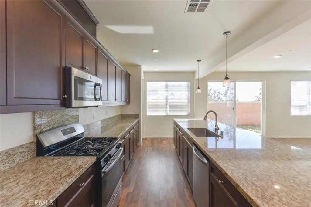A dynamic two-story home featuring 2934 square feet of open living space consisting of 4 bedrooms , Office can be the 5th bedroom, huge loft, 2-bay garage. The beautiful floorplan opens to an expansive dining room and great room, both of which perfect for family gathering. The gourmet kitchen includes a built-in pantry, upgraded cabinetry, granite countertops, stainless steel appliances and elongated granite-topped kitchen island that is sure to satisfy the chef of your family. This floorplan also features a coat closet, flex room with French-door entry as well as a separate downstairs bedroom and bathroom. Second floor features the master suite with a huge 440 sf LOFT !!! a separate laundry room, two secondary bedrooms, secondary bathroom. Master suite, full bathroom with dual sinks, shower and luxurious soaking tub as well as a large walk-in closet with built-in shoe rack, giving you ample space for any morning routine. 4 parks in the community, community pool and spa, 4 parks The house has Solar energy. move in today is possible ! included washer and dryer, dish washer.