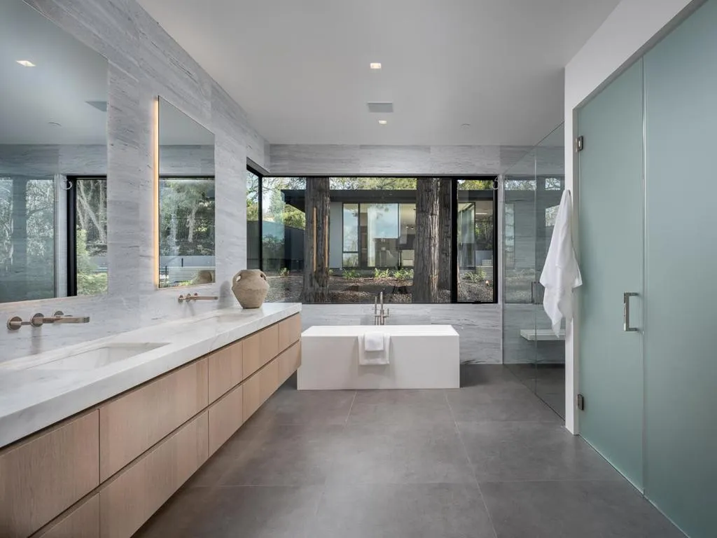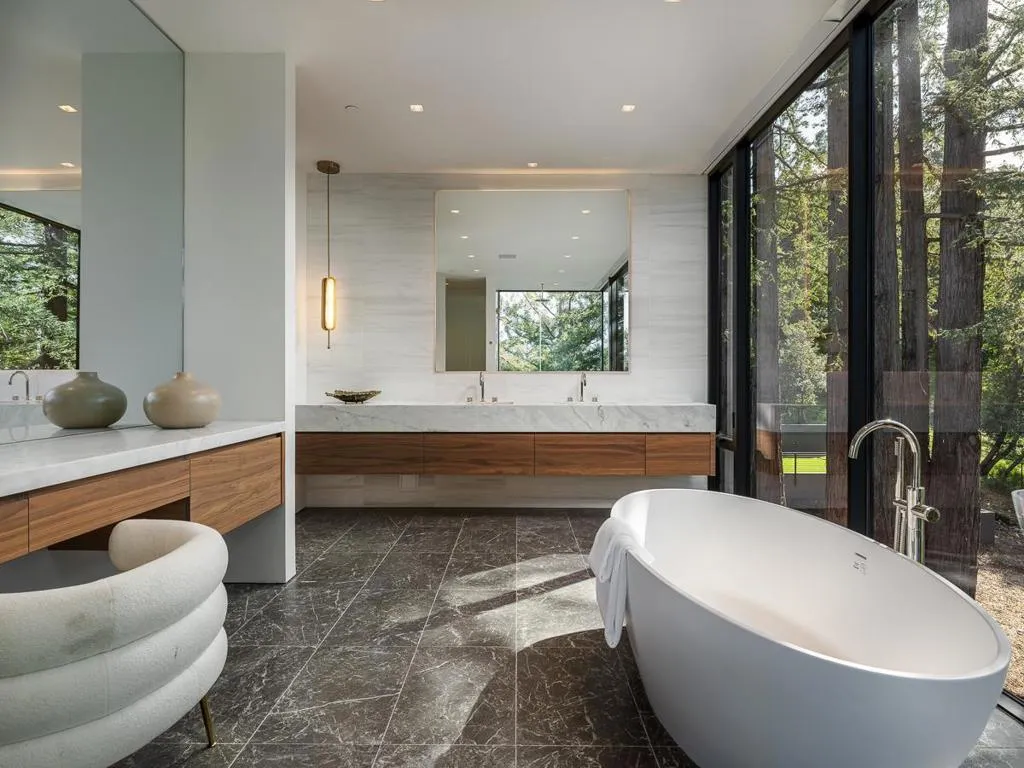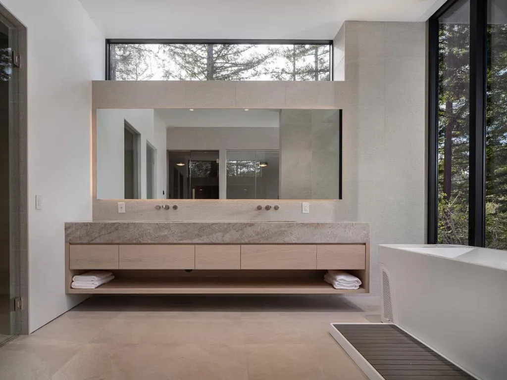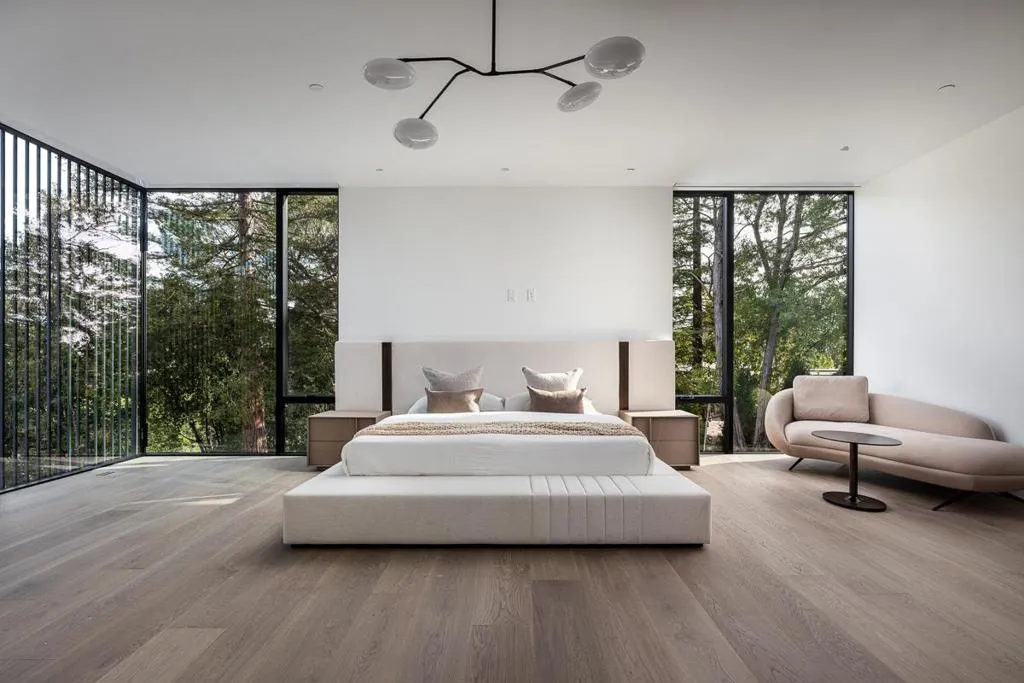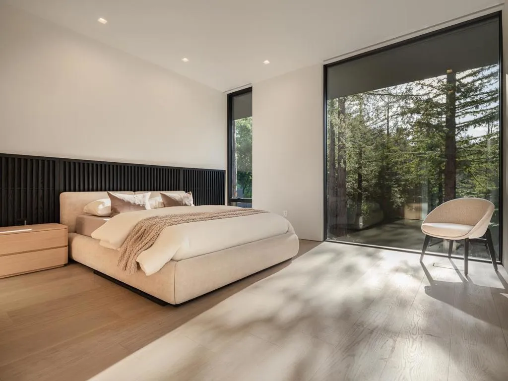 Secluded in the exclusive Country Club Manor neighborhood of Hillsborough, this fully furnished modernist masterpiece, a three story wonder of glass that floats with the forest. Designed by acclaimed, award-winning architect Leonard Ng, this iconic 11,141 sq. ft. retreat is a meditation on minimalism, an extension from the trees that questions where nature ends & home begins. Clear heart cedar and limestone walls open to vast windows, soaring lines and engaging angles that lean into natural light & wide views. 8 en-suite bedrooms, one powder room, back kitchen, home theater, great room, fitness studio and spa with full bathroom, cold plunge, wet & dry saunas and private yoga deck and Warmboard radiant heat, forced air heating and air conditioning with multi zones. Detached 800 sq. ft. 1 bedroom, 1 full bathroom guest house provide for exquisite living. A vanishing edge pool, phenomenal indoor-outdoor entertaining and meandering paths of curated native plants elevate life. Coveted location for top-performing schools, community, walk to Burlingame Country Club & an ideal commute between San Francisco and Silicon Valley. See the world in a new light.