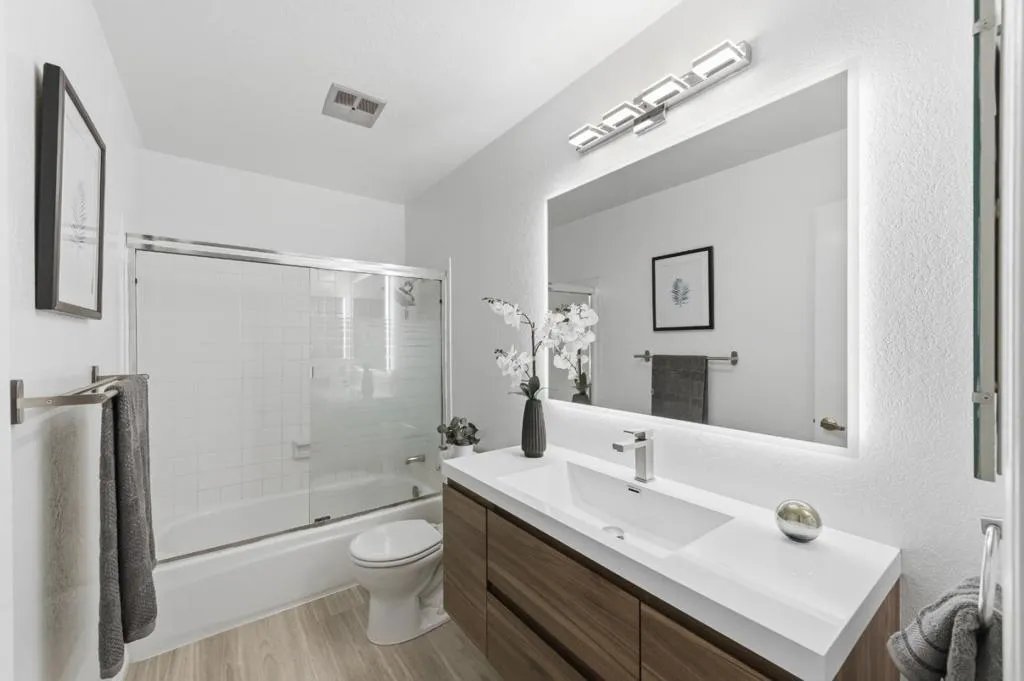 Gorgeous Ponderosa home on a desirable Union City street. Greeted by beautiful rose bushes & tangerine tree, this home offers nearly 2,000SF of refreshed living space. Blending modern upgrades w/everyday comfort. The living room sets the tone w/vaulted ceilings, engineered hardwood floors & great natural light creating an airy, open feel. Open concept kitchen/family room w/wonderful indoor-outdoor flow to the private backyard. Spacious family room w/warm fireplace & wired for surround sound. The kitchen delivers a bright, functional layout w/peninsula-style island, garden window, warm cabinetry, granite counters & quality appliances. The primary suite features vaulted ceilings, custom walk-in closet, plush carpet & luxe bath w/modern double sink vanity, LED Mirror, skylight & rainfall showerhead w/handheld. Two good sized guest beds share a remodeled full bath. Other highlights: remodeled half-bath, recessed lights w/dimmers, central AC w/Nest, alarm system, laundry room & garage w/epoxy floors & EV charger. Entertainer’s backyard w/custom seating, lawn, BBQ area & speaker system. Prime location near Union Landing Center, parks, trails, BART & freeways. Close to highly regarded schools. Move-in ready & designed for comfortable living. A wonderful opportunity awaits in Union City.