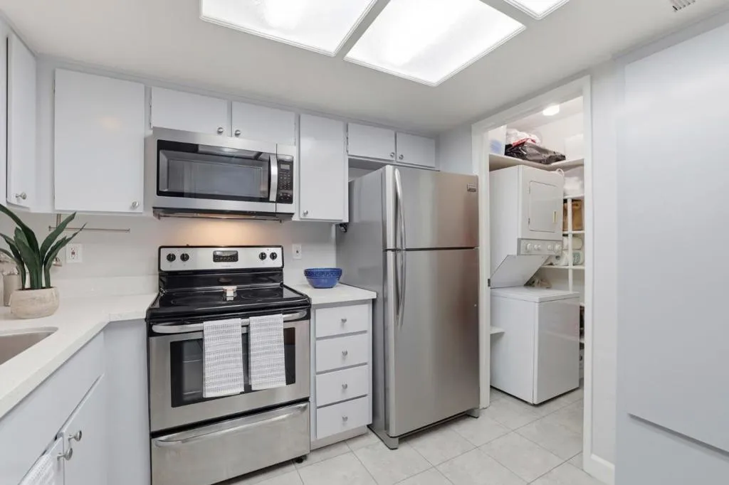 Nestled in a Berryessa neighborhood. Well-designed move-in ready with no stairs, lower-level rear corner Condo. Privacy with no shared walls on the sides and away from the common area. 2-bedroom, 2-bath condo surrounded with a view of Redwood trees. This home is well-maintained, an updated kitchen with quartz countertops, electric range, microwave, dishwasher, refrigerator and a pantry shelving for storage. The laundry area includes your own washer and dryer for added convenience. Laminate flooring runs throughout the home, adding a clean, contemporary feel. The spacious primary suite offers a large closet with shelves and an updated bath with a large, tiled shower. The second bedroom separated from the Primary bedroom by an updated hall bath with shower/tub combo. A perfect outdoor extension with a private patio for indoor/outdoor living. The community pool is steps away for your enjoyment. Conveniently situated to many shopping centers, public transportation, light rail and nearby is the BART and Hwy 680 access for commuting. Nearby the East foothills, Historical Alum Rock Park and to the City of San Jose Berryessa Community Center offering many all ages of services. Penitencia Creek Park with playgrounds, water pond, opportunities for hikers, bikers, skaters and nature walks.