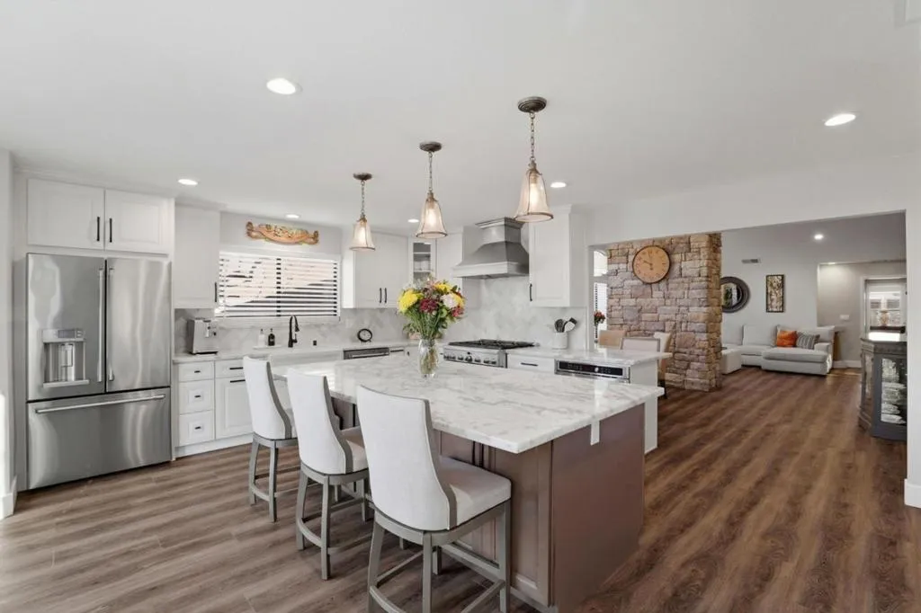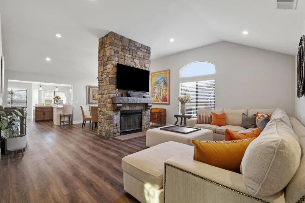 Welcome to The Villages Golf & Country Club, a premier 55+ gated community offering the ultimate resort-style lifestyle. This stunning 1,945 sf, SINGLE FAMILY HOME, featuring 2BD, 2BA, PLUS DEN showcases impeccable upgrades throughout. Enchanting outdoor setting creates a memorable first impression, leading to majestic double wrought iron doors. Inside, the inviting open-concept floor plan is filled with natural light & centered around a grand yet cozy fireplace, creating an ideal space for both relaxing & entertaining. The beautifully remodeled kitchen is a true showpiece, featuring SS appliances, granite countertops, and an oversized center island with seatingperfect for gatherings and everyday living. The primary suite offers a peaceful retreat with direct access to the serene backyard. A spacious secondary bedroom with a walk-in closet provides comfort & privacy for guests. The outdoor living spaces are truly exceptional, with tranquil front & rear settings that include a peaceful babbling brook, charming gazebo, and expansive wraparound deckideal for morning coffee, outdoor dining, gardening, or quiet relaxation. This rare & distinctive home offers a unique opportunity to enjoy the luxury lifestyle of The Villages Golf & Country Club.