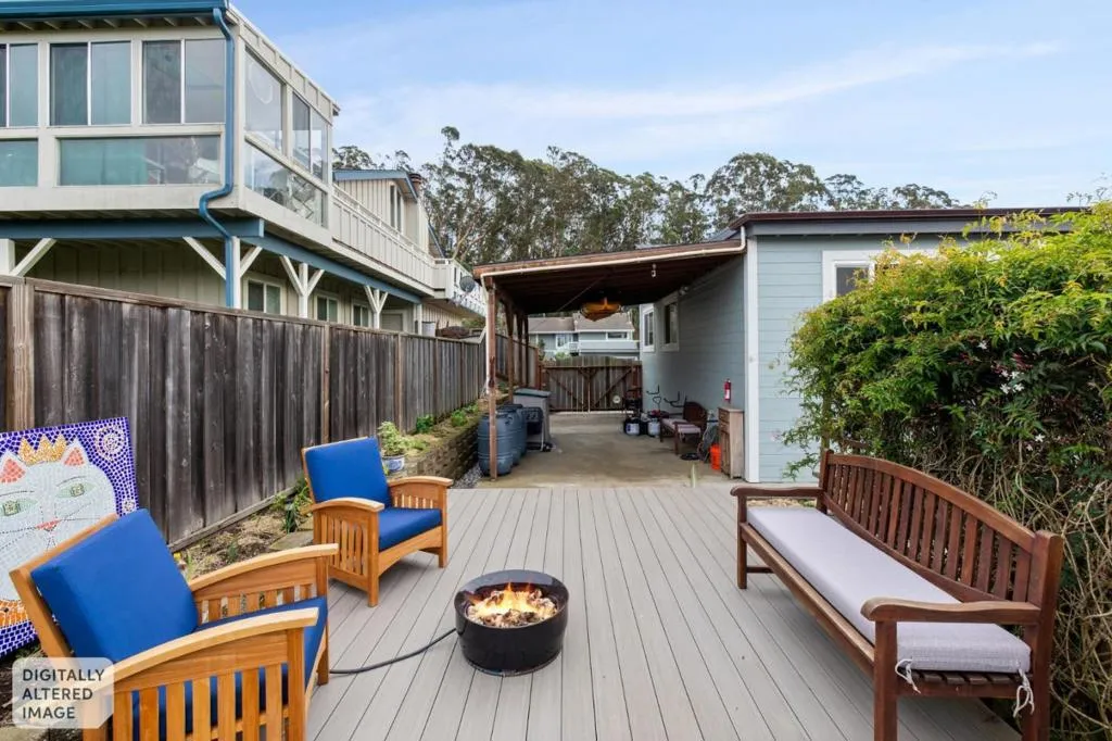 Located in the sought-after Clipper Ridge neighborhood, moments from the coastal charm and waterfront dining at Pillar Point Harbor, this spacious home with views of the ocean and open space embodies coastside living. Set on a 7,300+ sq ft lot, the residence offers 1,770+ sq ft of comfortable living space with 4 bedrooms and 2-1/2 bathrooms. The light-filled living room features vaulted ceilings and a fireplace, creating a welcoming feel. Sliding glass doors lead to a composite deck, perfect for morning coffee or sunset evenings with filtered ocean views. The dining area flows into the kitchen with a center island, granite countertops, and stainless steel appliances ideal for casual meals and entertaining. Upstairs offers four bedrooms and two full baths, including a generously sized primary suite with its own ensuite. The lower level provides a flexible bonus space with a half bath and built-in storage, perfect for a home office, gym, media room, or guest retreat. Additional highlights include a two-car garage with storage, landscaped gardens, a covered carport for RV or boat parking, and a natural gas generator with automatic transfer switch for added comfort and peace of mind. With easy access to Highway 1, commuting north to San Francisco or enjoying nearby Half Moon Bay.