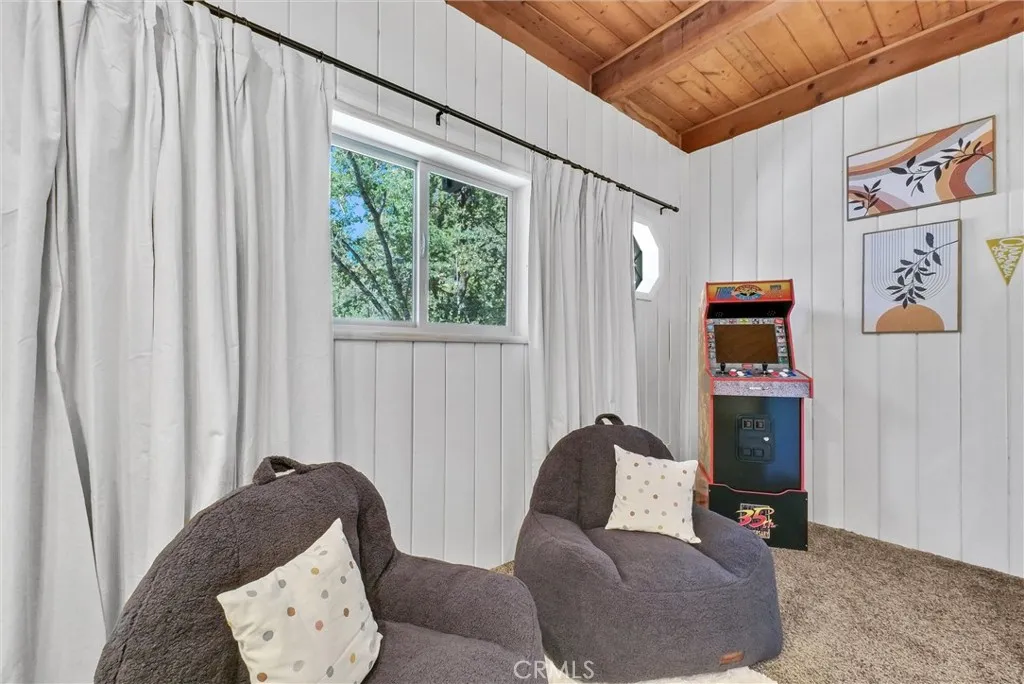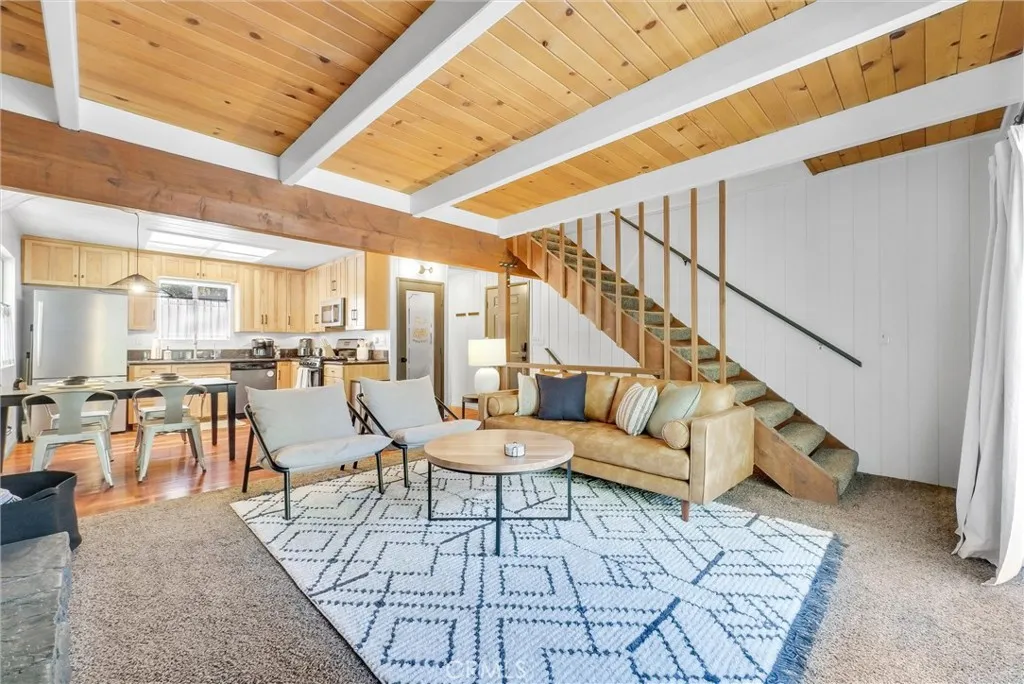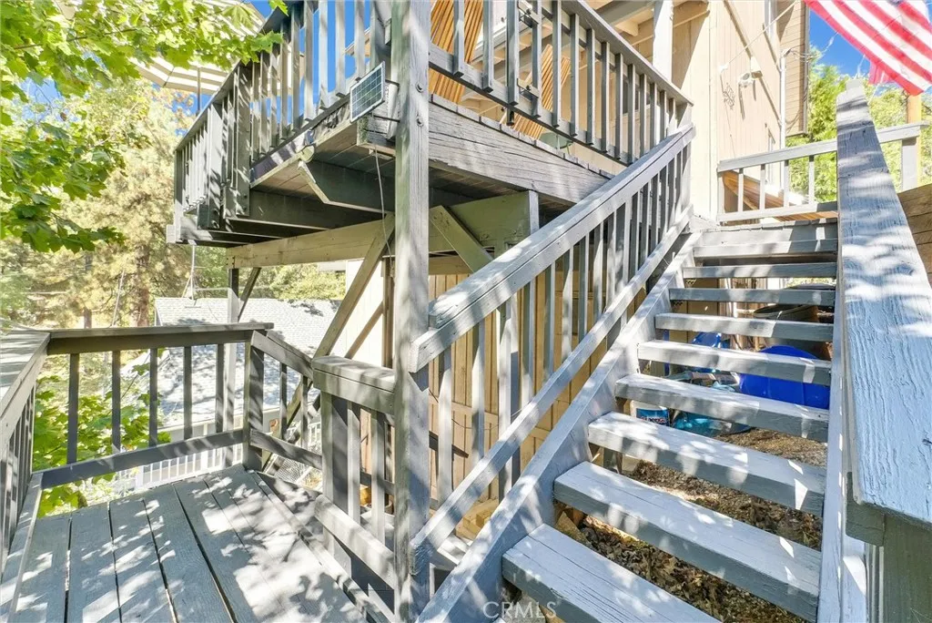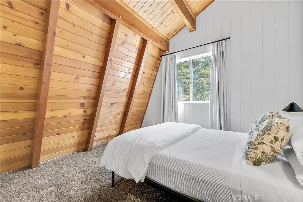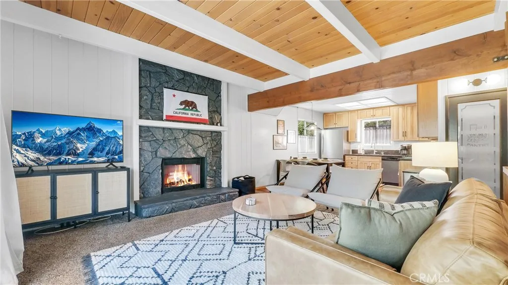 Wow! Stunning FULLY FURNISHED 3 bed / 2.5 bath ARROWBEAR cabin which has level entry and parking! This home is in the TOP 5% on AIRBNB and has a current STR (short term rental) permit! Everything is included in the sale for a turnkey rental, 2nd home or use as your primary residence with short commute times down the mountain from this location! MANY RECENT UPGRADES WHICH INCLUDE: GENERAC GENERATOR to ensure uninterrupted power (2024), EV charging station for your electric vehicle (2024), New permitted ELECTRICAL PANEL (2024), New EXTERIOR and INTERIOR PAINT (2024), New FURNACE (2025), Replaced full water main (2023), Replaced full sewer main (2023)!!! Relaxing and spacious front deck to enjoy all year long. Main level offers a spacious family room with a cozy fireplace, 1/2 bathroom and open dining area next to the gorgeous kitchen! The kitchen includes stone countertops, knotty pine cabinets, fridge, dishwasher, stove and PANTRY! This level also includes a back deck to enjoy the MOUNTAIN VIEWS! Upstairs includes 2 large bedrooms and one full bathroom! The primary bedroom offers a fireplace and private back VIEW DECK! Downstairs leads you to bedroom #3 with a 3/4 bathroom and laundry room! This home also includes an extra large storage room / basement with inside access from the bottom floor. Cougar lane is conveniently located right off Highway 18 with easy road access which includes snow plowing of street!