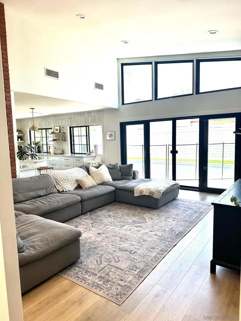In the heart of Poway! This beautifully updated single-story 4-bedroom, 2-bath home (1,935 sq ft on a 6,900 sq ft lot) blends modern upgrades with low-maintenance living. Built in 1974 and extensively renovated, it’s move-in ready with over $150K+ in recent improvements. Step inside to bright, open living spaces featuring fresh laminate flooring throughout, new baseboards, a new skylight, enlarged living room window, and sleek new sliding doors opening to the backyard oasis (See Supplement for Additional Upgrades) The show-stopping kitchen (remodeled 2021-2022) boasts raised ceilings, recessed lighting, new cabinets, stone island & countertops, tile backsplash to ceiling, pantry, new sink, appliances, and windows. The primary suite (updated 2023) offers laminate floors, new closet doors, and a spa-inspired bath with tile flooring/shower, new dual-sink vanity, shiplap accent wall, modern fixtures, and seamless open layout. The guest bath (2023) mirrors the upgrades with new tile, vanity, shiplap, toilet, mirror, and lighting. Outside, enjoy your private solar-heated below-ground pool (remodeled 2021 by Gardner Pools, $26K) with new plaster, tile, coping, Baja shelf + umbrella sleeve, and removable safety fence—perfect for year-round enjoyment. The fully remodeled backyard (2021, $30K) features premium pavers, low-maintenance artificial turf (System Pavers), gazebo, privacy fencing, and a new shed for pool equipment. Recent 2024 full roof replacement adds peace of mind.