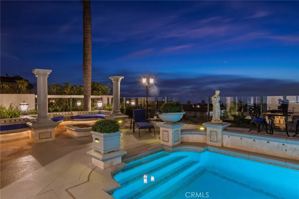 Nestled within one of Newport Coast’s most prestigious and sought-after enclaves, this exceptional estate—originally built as the community’s model home—commands a premier cul-de-sac location with breathtaking 270-degree panoramic views spanning the Pacific Ocean, Catalina Island, city lights, mountains, and rolling valleys. Designed for both elegance and comfort, the residence offers five expansive bedrooms, including a highly desirable main-level suite, ideal for guests or multi-generational living. The home has been extensively upgraded throughout, blending timeless architectural grandeur with refined modern luxury. Interiors showcase soaring two-story ceilings, expansive windows, updated contemporary finishes, new designer rugs, custom drapery, and a completely remodeled collection of spa-inspired bathrooms. The gourmet kitchen has been elevated with top-of-the-line Viking professional appliances, premium countertops, and thoughtful enhancements that cater to both everyday living and sophisticated entertaining. Additional upgrades include dual new air-conditioning systems and a high-end, whole-house water softening and filtration system designed to deliver exceptional water quality throughout the residence. Outdoors, the resort-style backyard offers an inviting pool and spa, built-in BBQ, wet bar, fire pit lounge areas, and newly customized outdoor furnishings, all perfectly positioned to capture coastal breezes and unobstructed views. Private, serene, and impeccably maintained, this estate is moments from Newport Coast’s most iconic beaches, world-class shopping, dining, golf, and coastal amenities. Offered as a turn-key luxury lease, this home presents a rare opportunity to experience an elevated coastal lifestyle in one of Southern California’s most exclusive neighborhoods, which is sure to please.