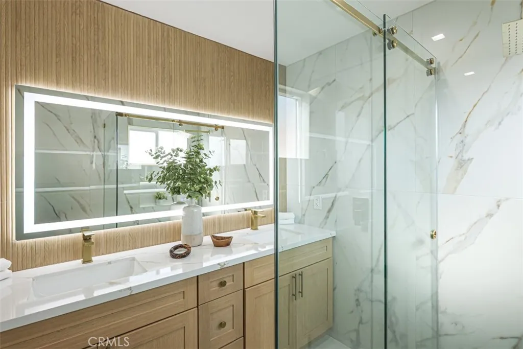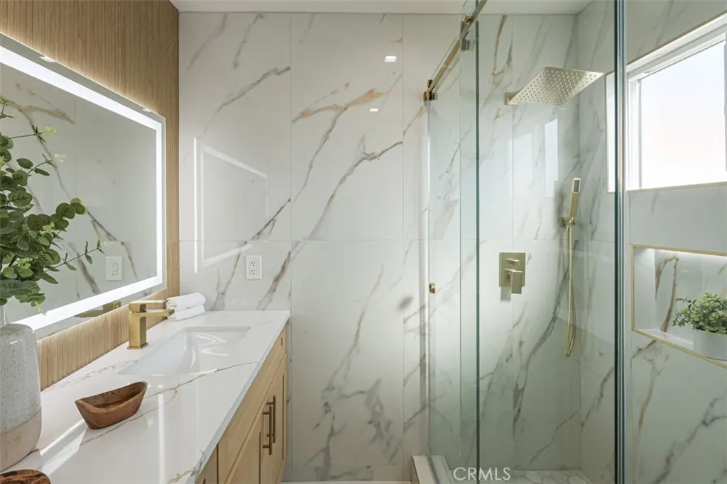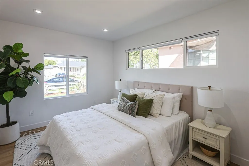 Welcome to your dream home! This beautifully remodeled 3-bedroom, 2-bath residence combines modern style with inviting warmth. The open-concept floor plan flows seamlessly into a brand-new, light-filled kitchen featuring Thermador high end luxury appliances, European style soft-close cabinets, sleek quartz countertops, a subway tile backsplash, wall-mounted pot filler faucet and a large, multifunctional kitchen island acts as the centerpiece of the home, offering substantial extra counter space for meal prep, casual dining, and entertainment. The spacious expanded fully permitted primary suite offers a private, spa-like new bathroom with a walk-in shower and custom made closet cabinets. Two additional bright bedrooms and a second full bath provide plenty of space for family and guests. All bathrooms are equipped with self-cleaning bidet toilet that combines modern, high-efficiency sanitation with hands-free, automated hygiene technology and wall-mounted mirror featuring integrated LED lighting dimmable and a built-in electric defogger pad. Brand new, energy-efficient LED recessed lighting installed throughout provides a sleek, modern, and bright atmosphere, featuring dimmable options for customizable ambiance. Complete peace of mind with all major infrastructure updated, including a full copper repiping and brand-new, code-compliant electrical wiring throughout. No need to worry about old plumbing or outdated electrical—just move in and enjoy. Experience ultimate comfort with the brand-new, ultra-high-efficiency central heating and air system that Includes a smart thermostat compatibility for convenient. Brand new double panned windows, brand new premium luxury vinyl plank flooring throughout, offering a seamless blend of modern style and rugged durability, Enjoy unobstructed, blazing-fast, and secure internet with this home’s bespoke, enterprise-grade Wi-Fi system and discreet ceiling-mounted access point. Fully equipped with a smart home security system, including outdoor cameras and doorbell camera. Brand New Rheem professional grade super high efficiency condensing Tankless Natural Gas Water Heater with WiFi technology, upgraded exterior walls with new insulation that improves energy efficiency and reduces thermal bridging. The spacious, landscaped backyard with significant potential for a detached ADU, entertaining or relaxing, completes this turnkey property. This home is a true gem located in a desirable neighborhood.