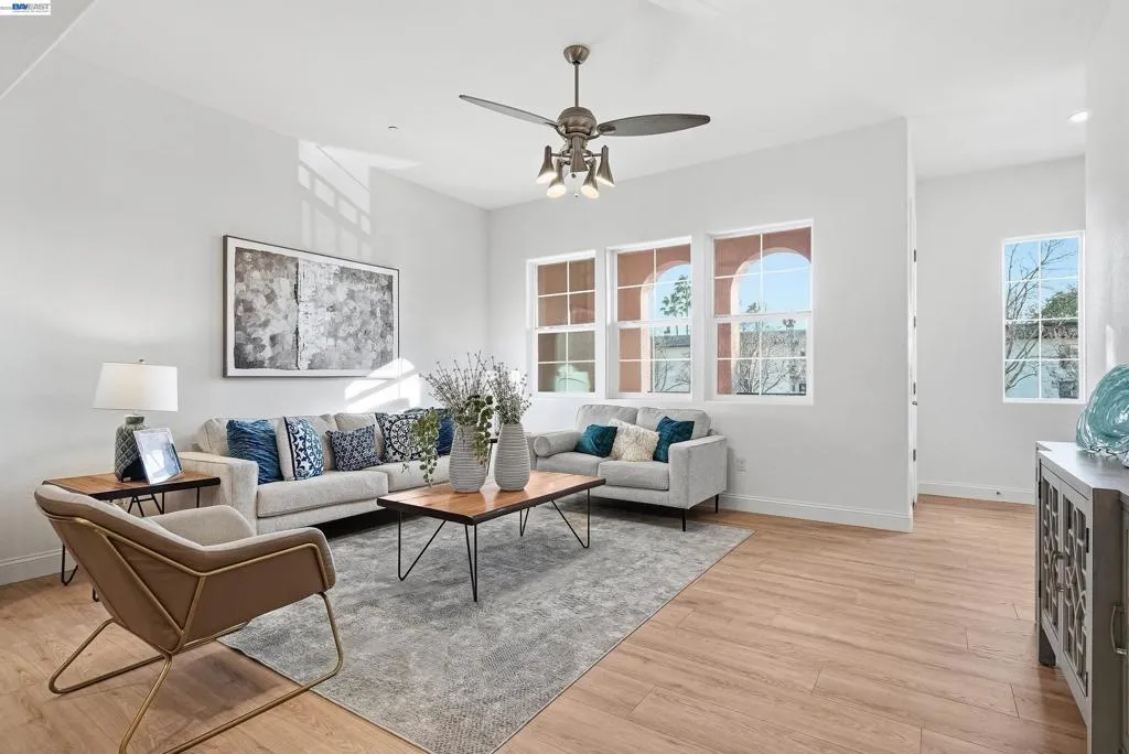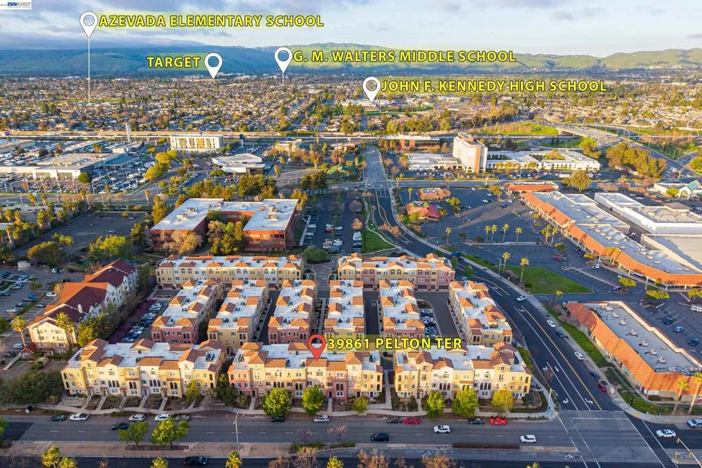 This highly sought-after luxury townhouse blends modern elegance, comfort, and everyday convenience in a beautifully designed open-concept floor plan. Built just 11 years ago, this spacious 2,114 sq. ft. home offers 4 beds, 3.5 baths, a 2-car garage, and low HOA dues. he main living area showcases soaring ceilings and an expansive living and dining space filled with natural light. The gourmet kitchen is a true centerpiece, featuring a large island, quartz countertops, stainless steel appliances, a gas cooktop, and seamless access great room and a covered balcony—ideal for year-round enjoyment and entertaining. The primary suite offers a private retreat with an en-suite bath and generous walk-in closet. A desirable ground-floor bedroom with a full attached bath provides flexibility for guests, multigenerational living, or a home office. Additional highlights include recessed lighting, a dedicated laundry room, and an energy-efficient tankless water heater. Ideally located near Newpark Mall, with abundant shopping and dining options just moments away. Enjoy access to top-rated schools, convenient freeway connections to I-880, CA-84, and I-680, and proximity to major employers such as Tesla, Meta, Kaiser and Costco -Perfect combination of luxury, location, and lifestyle.