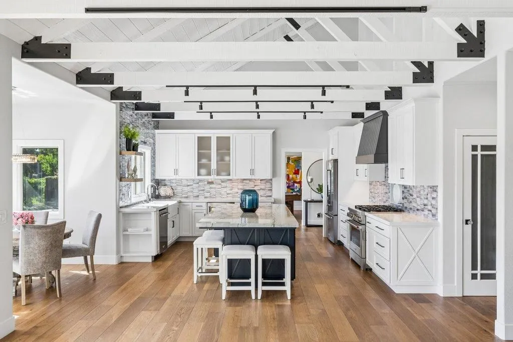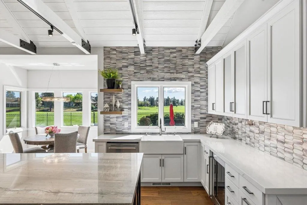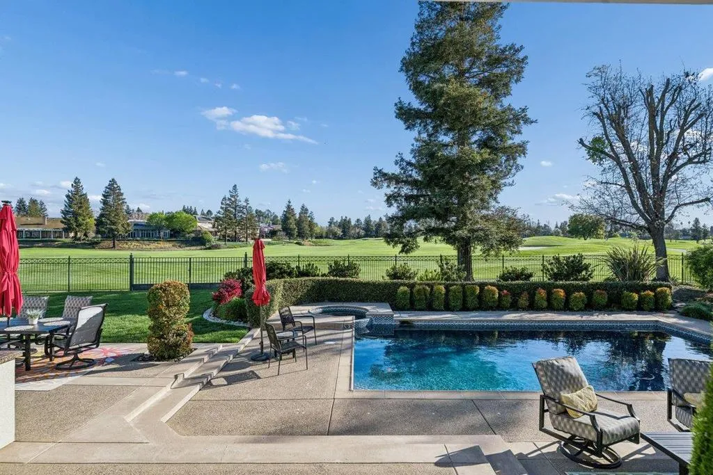 Set along the fairways of the prestigious Brookside Country Club, this impressive estate captures the essence of California living within Stockton’s most desirable community. Spanning nearly 4,000 sqft, the residence blends generous scale with thoughtful design & sweeping views of the manicured golf course. Soaring vaulted ceilings with dramatic exposed architectural beams create a sense of volume & light throughout the home. Hardwood flooring flow & expansive windows frame tranquil golf course vistas and fill the home with natural light. At the heart of the home is a beautifully remodeled showcase kitchen, designed for both everyday living and entertaining. The space features custom cabinetry, designer stone countertops, a large center island, & high grade appliances all set beneath the dramatic vaulted ceiling & exposed beam detail. The expanded master suite serves as a private retreat with a generous sitting area and panoramic windows overlooking golf course fairways. Updated bathrooms complement the home with contemporary design. Outside, a sparkling pool and expansive patio areas create the perfect environment for relaxation and entertaining. Located within the secured gates of Brookside, residents enjoy privacy, and access to Stockton’s finest country club community.