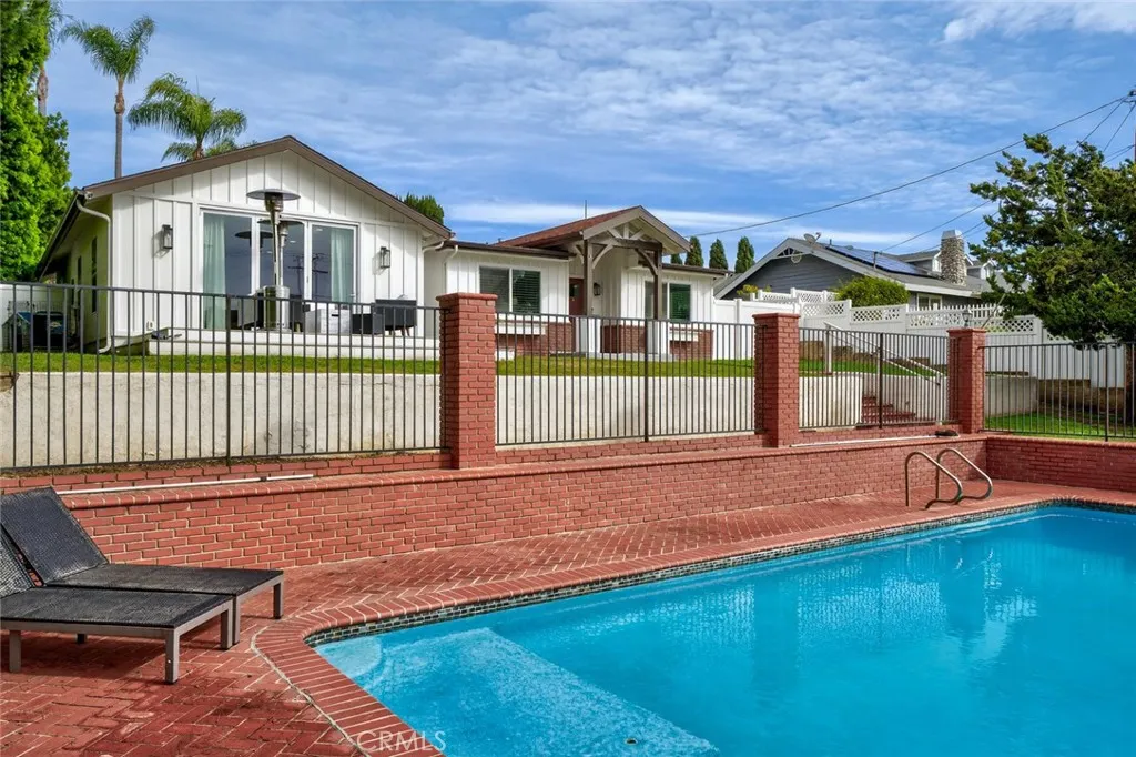 The front yard is an entertainer’s dream, featuring a large in-ground pool and covered patio complete with a built-in bar, BBQ, and TV. A convenient ¾ bathroom and dedicated laundry room serve the pool area—perfect for hosting with ease.