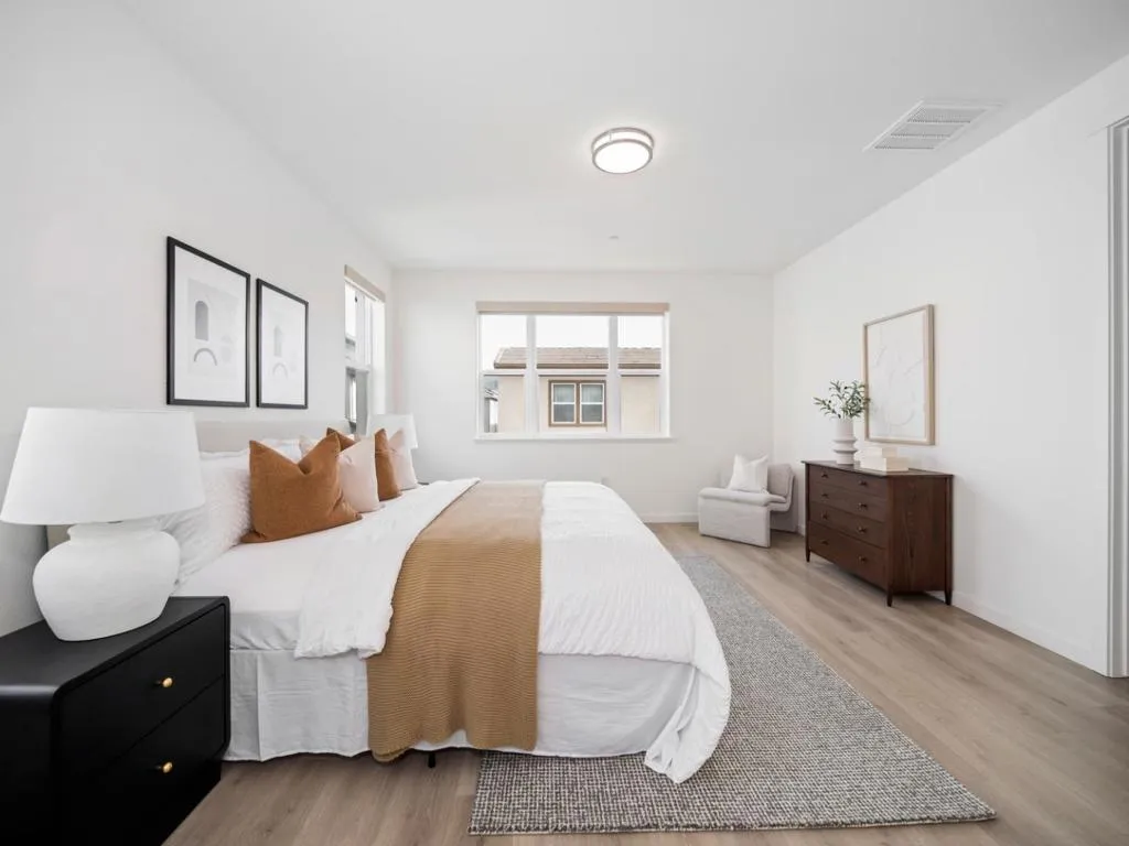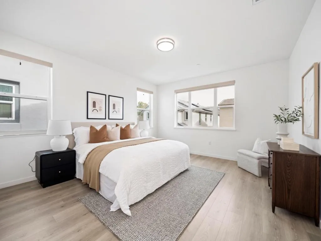 Built in 2019, this beautifully appointed 4-bedroom, 3.5-bath single-family home in one of San Joses most sought-after newer communities contains of $77K upgrades. Thoughtfully designed for flexibility, the home features a private ground-level bedroom and full bath ideal for multi-generational living, guests, or a dedicated office. The open-concept main level is anchored by a chef-inspired kitchen with premium European appliances, quartz countertops, sleek cabinetry, and an oversized island perfect for entertaining. High ceilings and expansive windows fill the space with natural light, creating a bright and welcoming atmosphere. Upstairs, the spacious primary suite offers a walk-in closet and spa-like bath with dual vanities, a soaking tub, and separate shower. Well-proportioned secondary bedrooms provide comfort and privacy. Enjoy indoor-outdoor living with a paved side yard and landscapes. Additional features include owned solar panels, EV charging capability, energy-efficient systems, generous storage, and a finished two-car garage. Residents enjoy access to resort-style amenities including a clubhouse, playground, walking paths, garden areas, and BBQ spaces. Ideally located near major commuter routes, shopping, dining, and everyday conveniences in the heart of Silicon Valley.