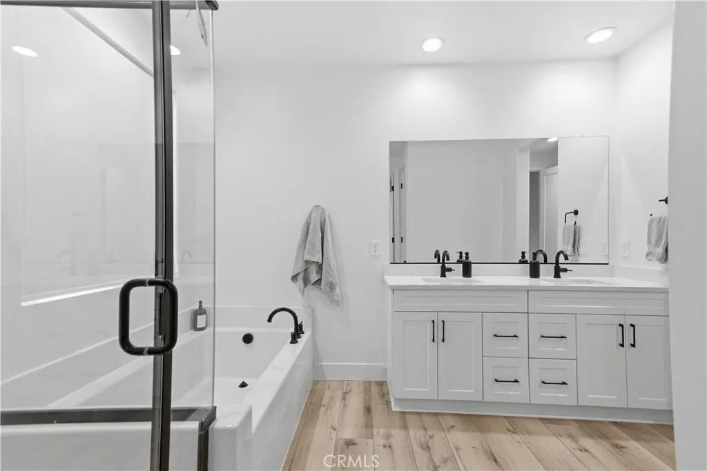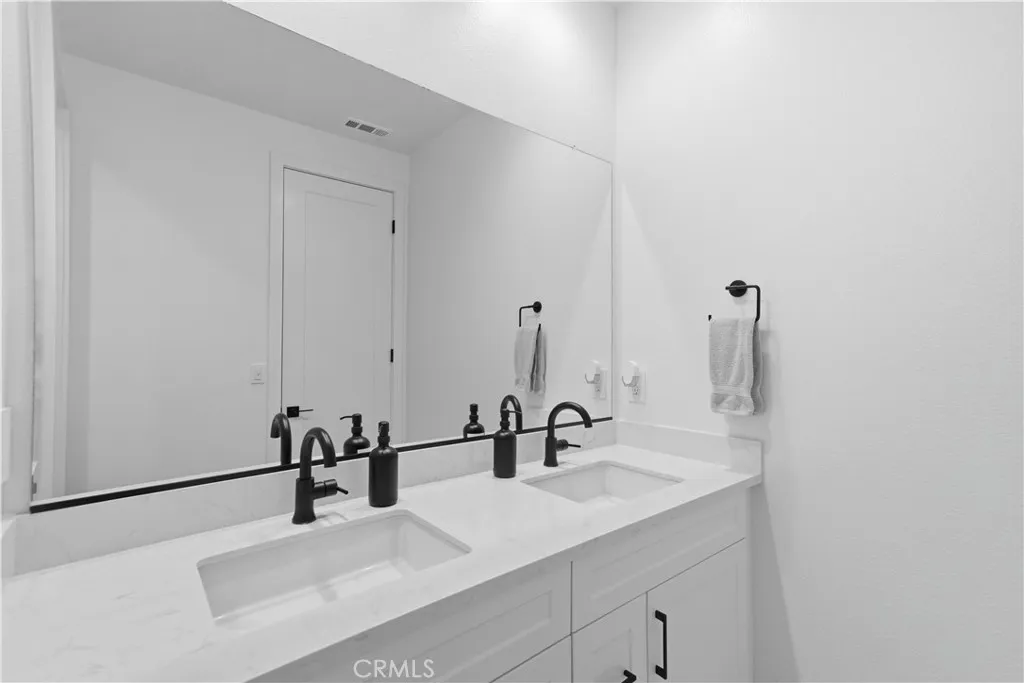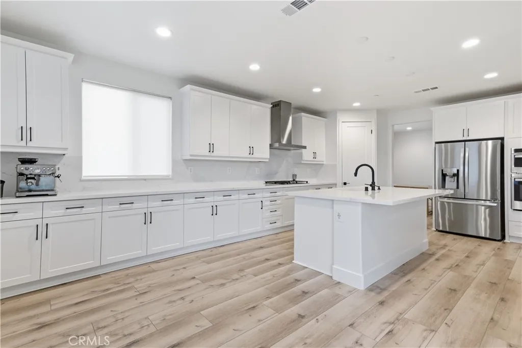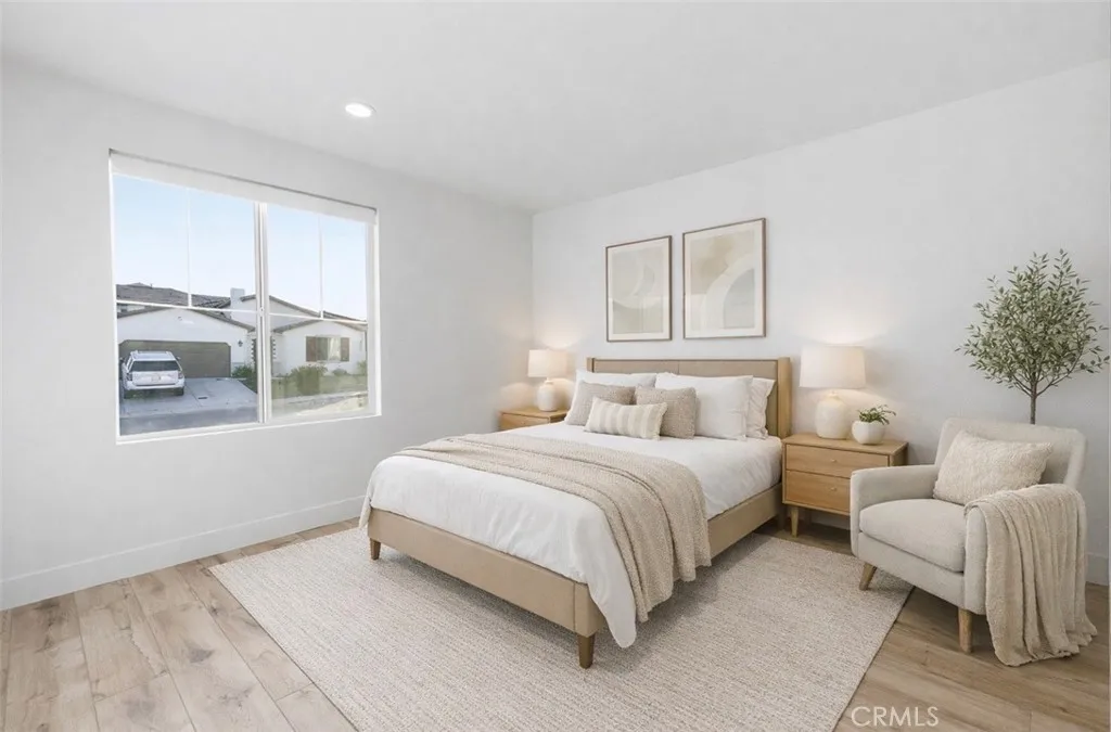 Welcome to this beautifully upgraded 2022 Richmond American home located in the highly desirable Overlook at Summerwind Trails community. Situated on a premium corner lot with no rear neighbors and a builder selected lot premium for the backyard view, this thoughtfully positioned south-facing home offers privacy, natural light, and modern design throughout. With over $70,000 in builder upgrades, the home showcases a modern open-concept floor plan perfect for entertaining. The spacious great room flows seamlessly into the upgraded kitchen, complete with quartz countertops, 41-inch upper cabinets, soft-close cabinetry throughout, a large center island, built-in oven with microwave combo, gas cooktop, designer stainless steel hood, dishwasher, refrigerator (included), and a pantry with custom owner-added shelving and drawers for enhanced storage. Wood-look waterproof luxury vinyl flooring runs throughout the entire home, including wet areas, complemented by upgraded 5-inch baseboards, 8-foot doors, and 9-foot ceilings. Ceiling fan prewires are installed in the great room and primary bedroom. The primary suite features a spacious closet with built-in organization system and a well-appointed bathroom with soaking tub, separate shower, dual sinks, quartz counters, and upgraded fixtures. Additional features include upgraded toilets in all bathrooms, tankless water heater, central AC and heat, energy-efficient dual-pane windows, leased solar panels, built-in speaker system in both the living area and covered outdoor patio, and a spacious two-car garage. The property includes front yard drip irrigation on timer, landscaped front yard, and a private backyard ready for your vision. Proposed Backyard Design Renderings: Backyard images are architectural landscape custom outdoor plan renderings created by a trusted licensed landscape design service. Renderings are for illustrative purposes only and do not represent existing conditions. The backyard is not currently built as shown. All backyard blueprints and digital renderings will be included with the sale of the home. Buyer to verify feasibility and permitting requirements. Located just 0.2 miles from Summerwind Trails K-8 School and near parks and community amenities. HOA is approximately $111 per month. This is a rare opportunity to own a highly upgraded, corner-lot home in one of the area’s most sought-after neighborhoods.