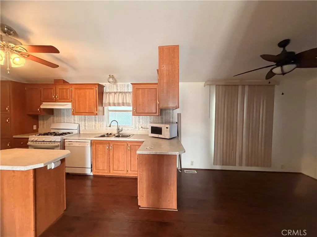 Beautiful Mobil home in 55+ community 3 bedrooms 2 full baths Formal living room open kitchen with island for extra storage. Nice dining area open to family room. Indoor laundry room, Single car garage deep to back covered patio and workshop. 2 car parking in front and guest parking across the street. Park is beautifully maintained. Space 63 in back part of park.